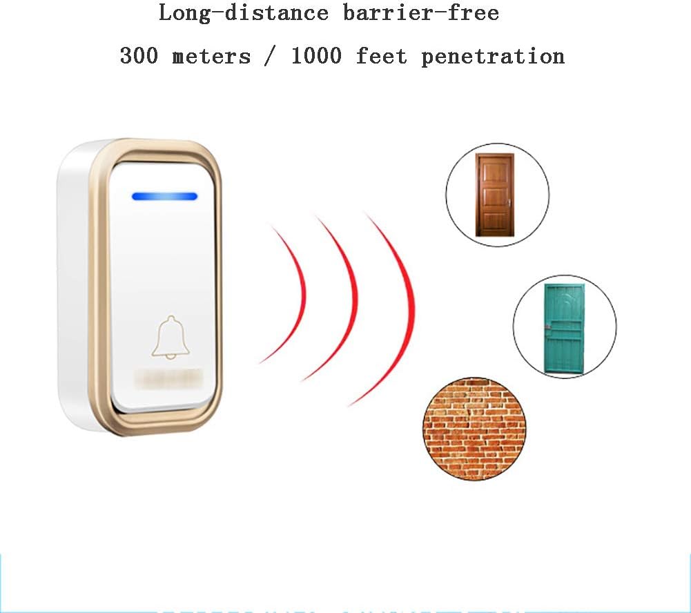 [ Long wireless range and strong signal]: The door bell have strong penetrating power, capable of transmitting clear signals up to long range 300M/1000 FT inside your home or business in an open space. You’ll be never miss a visitor’s arrival no matter where you are.