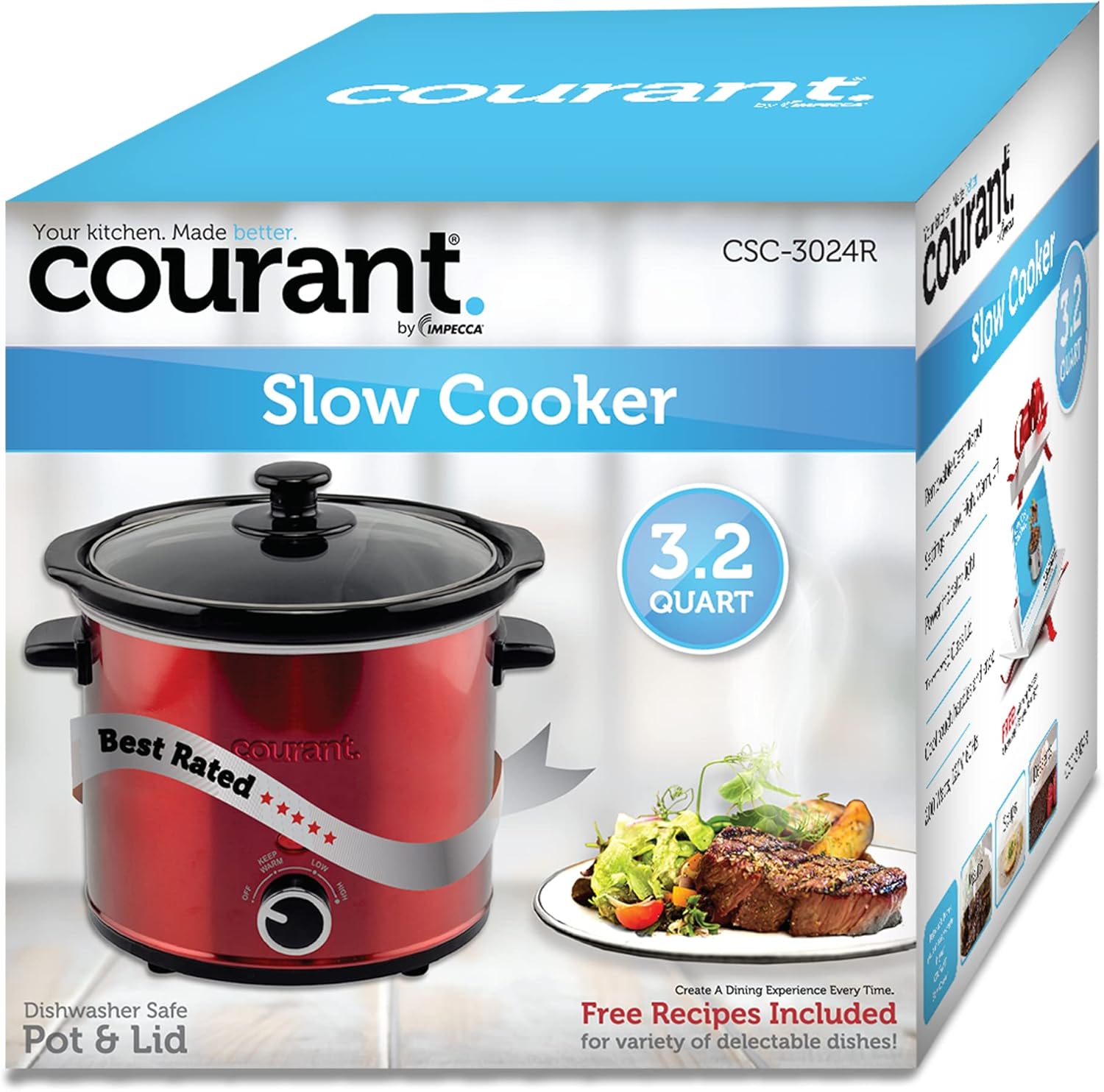 Courant 3.2 Quart Slow Cooker – Red, Removable Ceramic Insert & Glass Lid With Three Temperature Settings