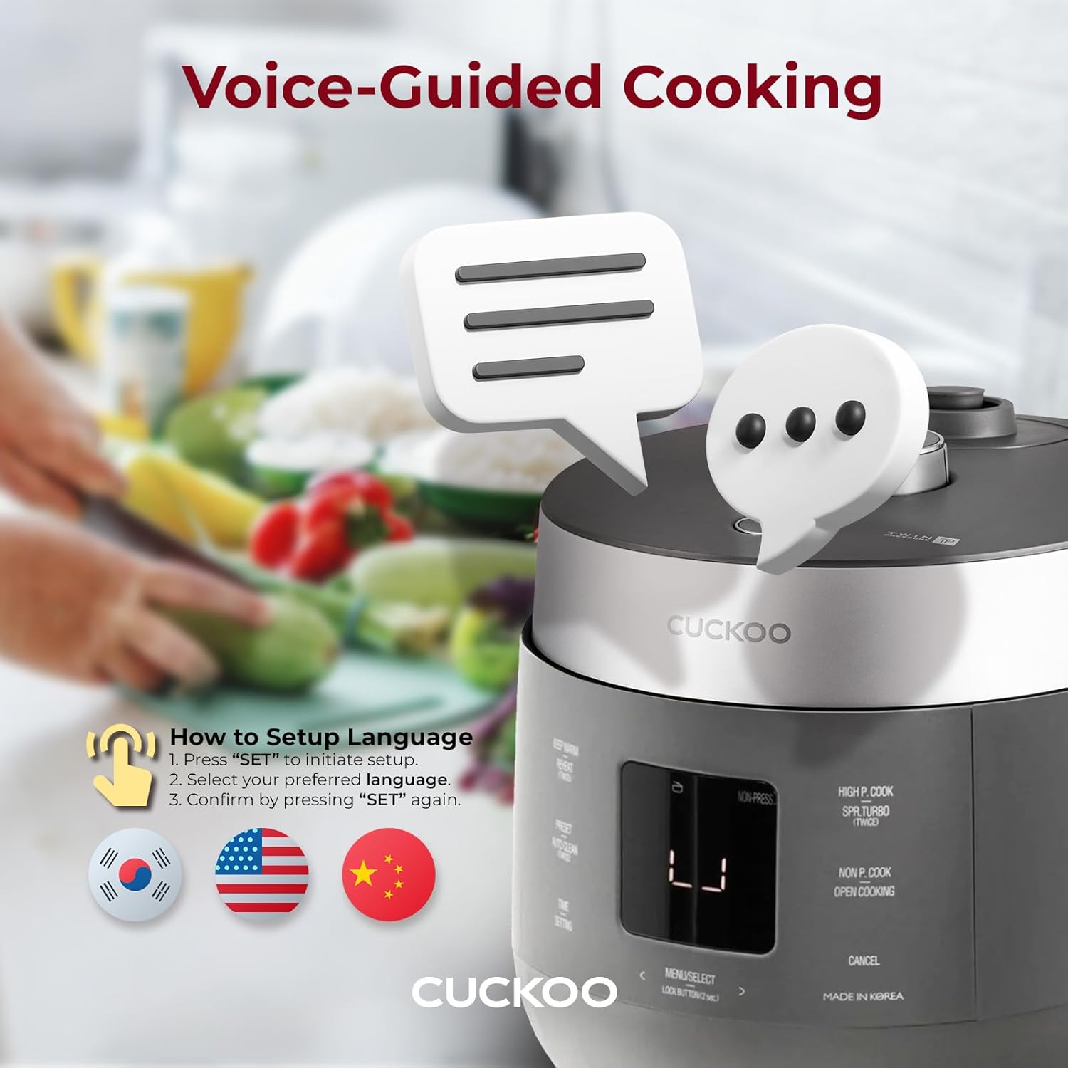 Make Cooking a Breeze with CUCKOO’s CRP-ST0609FG 6-Cup Twin Pressure Rice Cooker! Consistently delicious rice, optimally reheated leftovers, ready-made meals with the press of a button, and professional grade quality – with CUCKOO’s CRP-ST0609FG 6-Cup Twin Pressure Rice Cooker, all of this and more will be at your disposal. Key Features: Multi-Functional Cooking: This multi-functional cooker has 16 fully customizable menu options that allow a wide variety of meals, a reheat option for leftovers, and a keep-warm function to ensure none of your food is ever overcooked or burnt while serving. Smart Automated Technology: Transform this cooker into an effective food steamer with high or non-pressure steaming functions, or experiment with automated features such as the Preset Timer, which lets you place ingredients in the inner pot in the morning and come home to freshly made rice – no effort and no stress! 3 Language Voice Guide: Includes a voice navigation guide in English, Chinese, and Korean, this rice cooker will act as your personal kitchen assistant! High-Quality Construction: Featuring a durable, stainless steel inner pot with nonstick coating and induction technology, both ensure efficiency, optimal temperature, and heat distribution throughout the cooking process. Hassle-Free Cleaning: When cooking is completed, initiate the Auto-Clean function to automatically steam the interior of the rice cooker for a deep, quick clean. Elevate your culinary experience with CUCKOO’s CRP-ST0609FG 6-Cup Twin Pressure Rice Cooker, where innovation meets gourmet excellence!