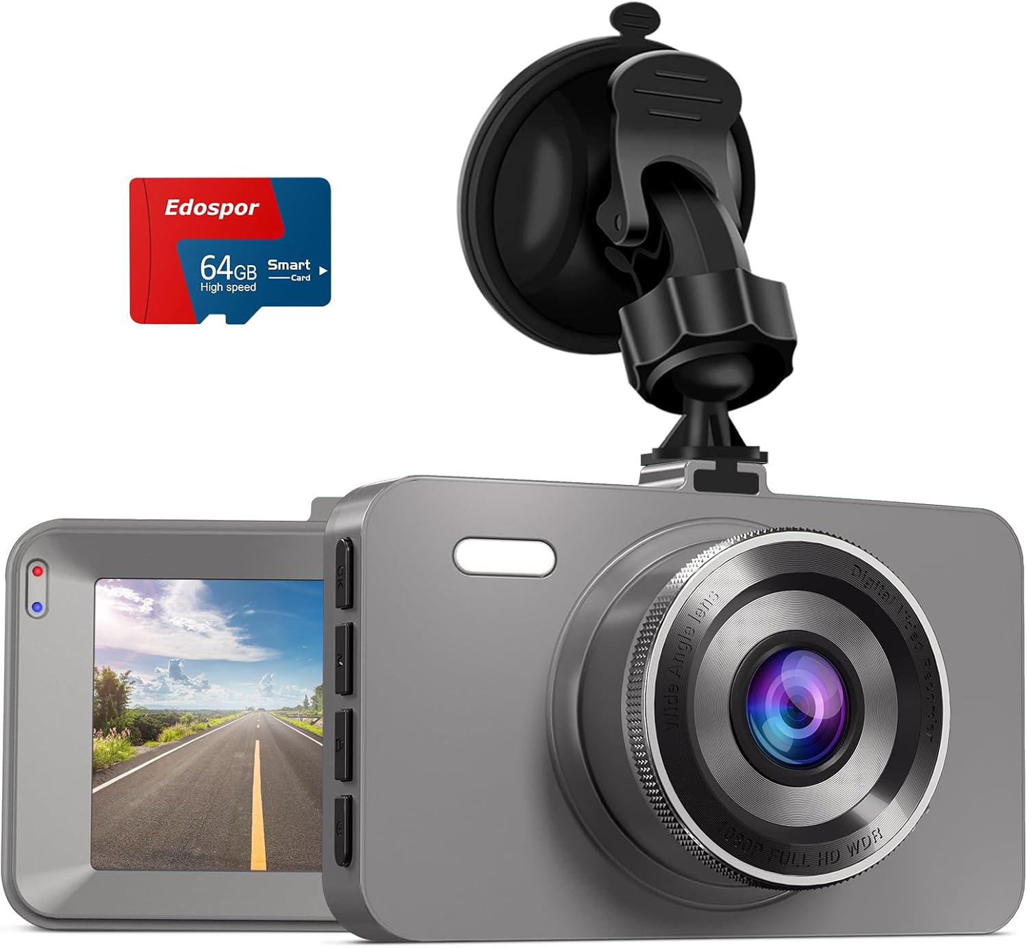 【1080P FHD & Best Cost-Effective】-Edospor dash cam can record videos with the resolution up to FHD 1080P. It can help you read key details such as road signs and vehicle license plates more clearly, bringing you better driving pleasure and better protection of your safety. Meanwhile, our car camera has integrated all mainstream technologies, can meet all your needs, and we also provide you with all the necessary accessories including a 64G SD card, giving you best cost-effective experience.