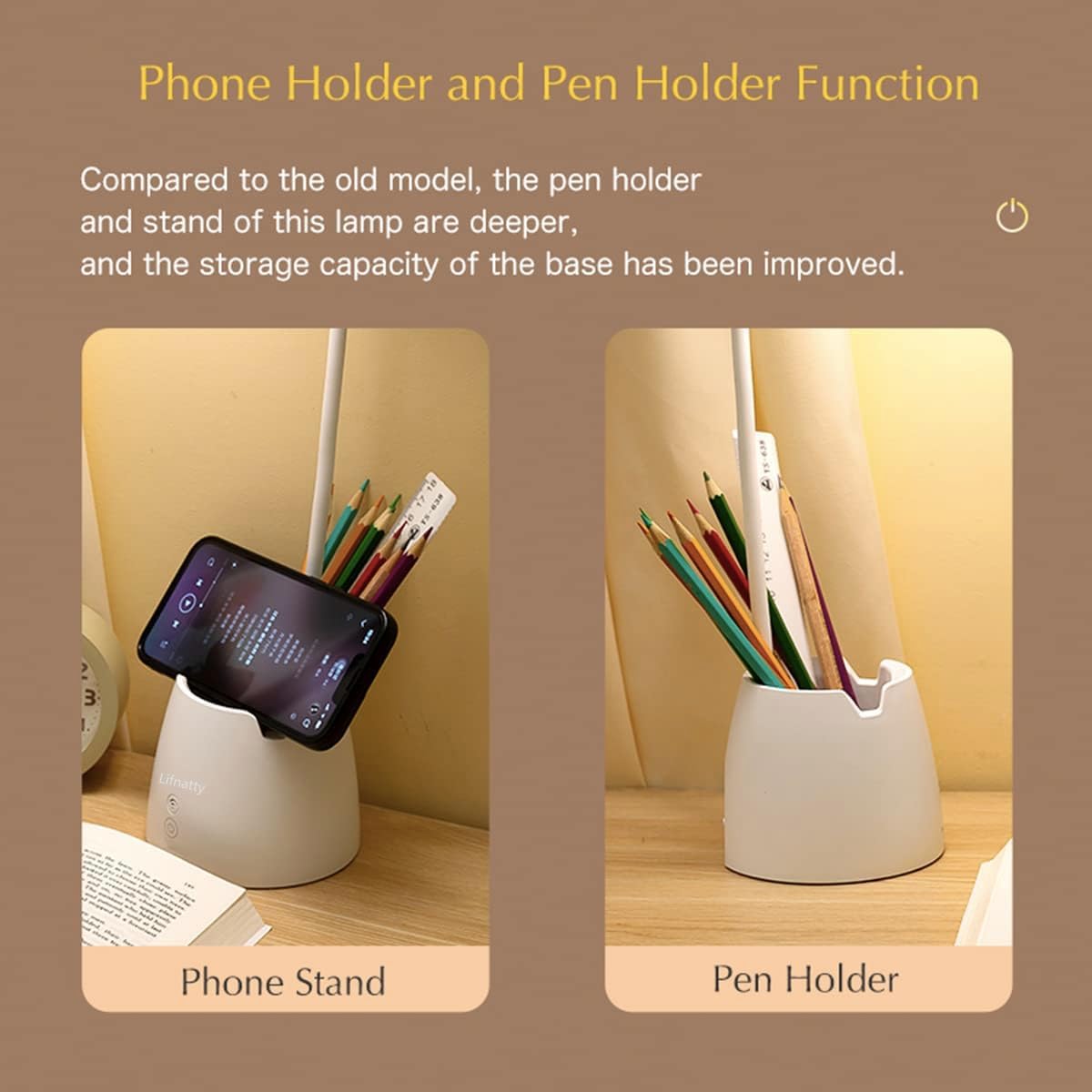 【Desk Lamps】This white desk lamp is equipped with a pen holder and a mobile phone holder, making your desktop tidier and saving desktop space. It is a must-have for offices, homes, and dormitories, and is a practical small desk lamp, office lamp, kid lamp, study lamp, reading lamp, and work lamp.