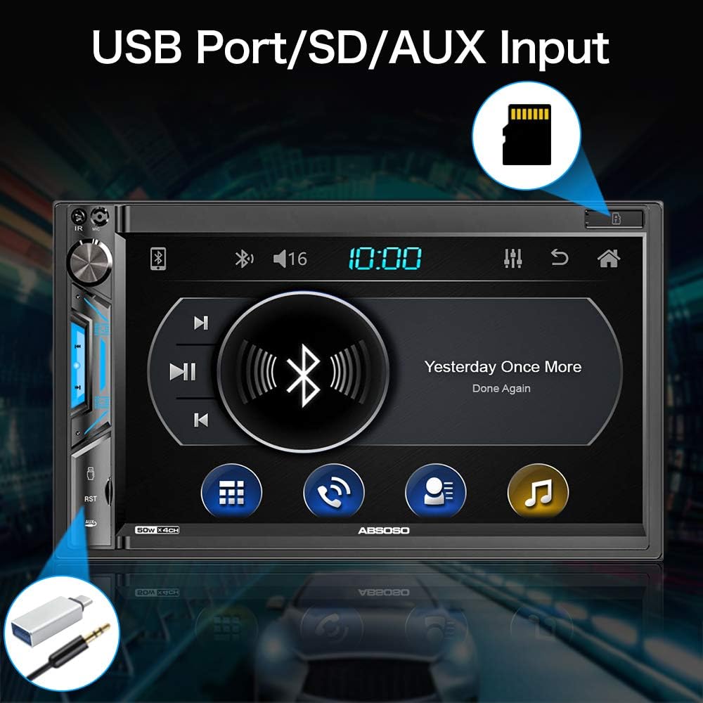 Double Din Car Stereo System – ABSOSO 7 Inch HD Touchscreen MP5 Car Player – Bluetooth Car Radio Receiver Supports PhoneLink Rear Front View Camera AM/FM USB/SD/AUX Input Steering Wheel Control