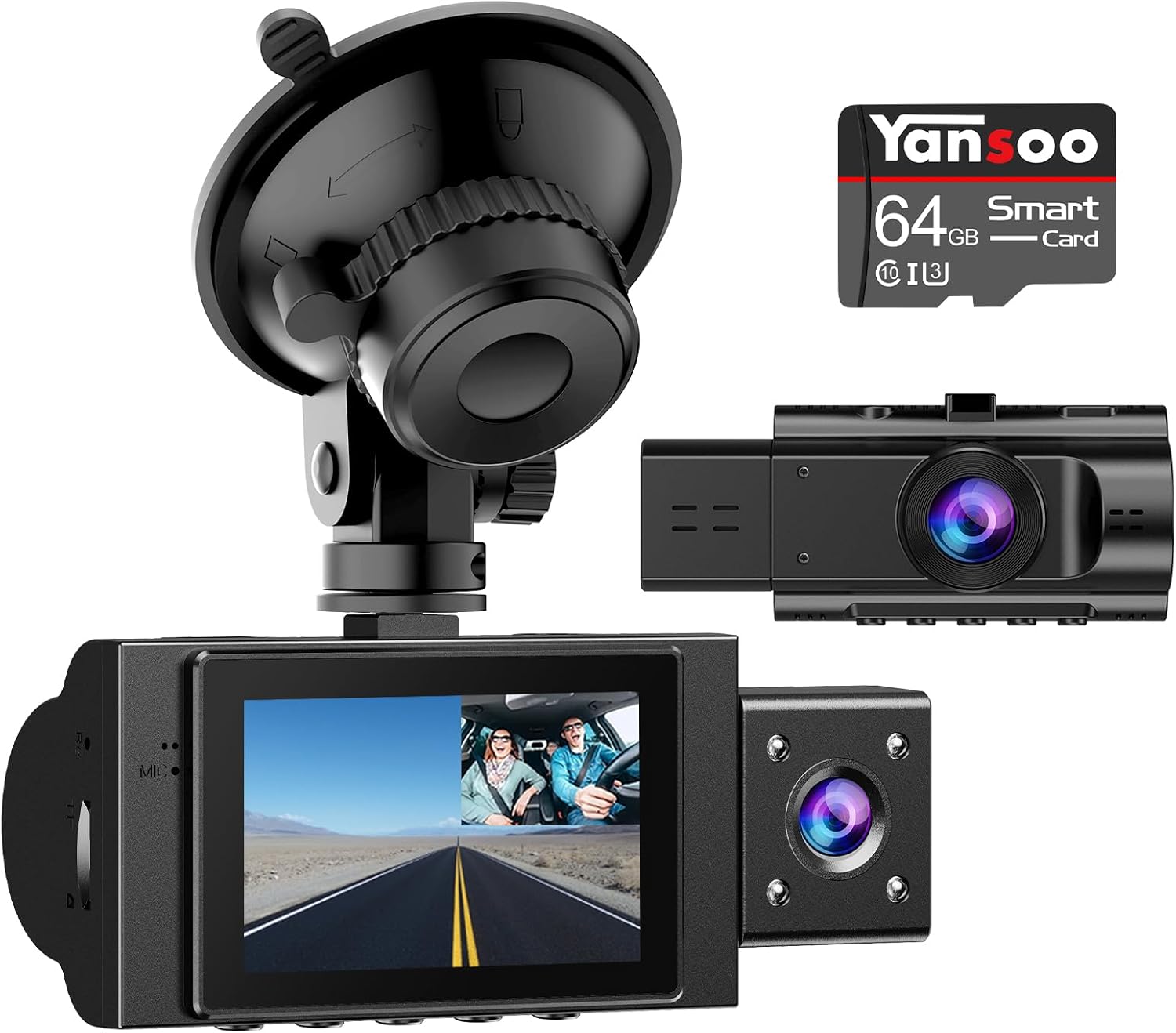 【Dual 1080P Dash Cam Front and Inside with 64GB Card】New upgarde! The package comes with one 64GB Card (already inserted in the dash cam,no need to buy memory card separate! (Support up to 64GB High Speed10 memory card)