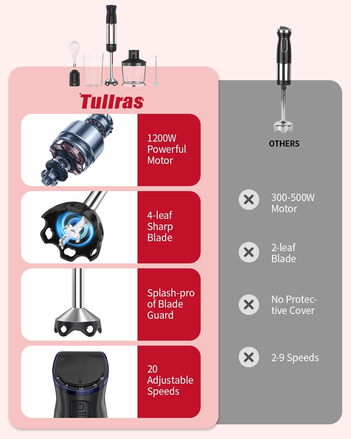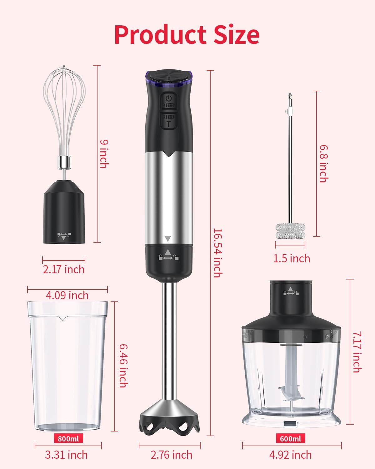 POWERFUL & EXCELLENT PERFORMANCE – Equipped with an 1200W sensor motor and 4 stainless steel blades, this immersion blender handheld delivers powerful performance and even cutting. Whether you’re working with hard vegetables, meats, or other tough ingredients, this hand held blender blenders sticker immersion handles them effortlessly, quickly blending them to the desired consistency. It ensures optimal performance with a variety of ingredients, making your cooking process more efficient and seamless.