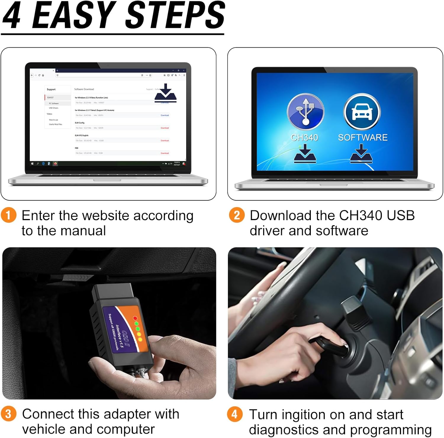 How to Use: Download the software and CH340T USB driver, connect OBD2 USB adapter to your car, access your chosen ELM327-based software, and begin the vehicle diagnostics. Pls note! Does not work on trailers or semis