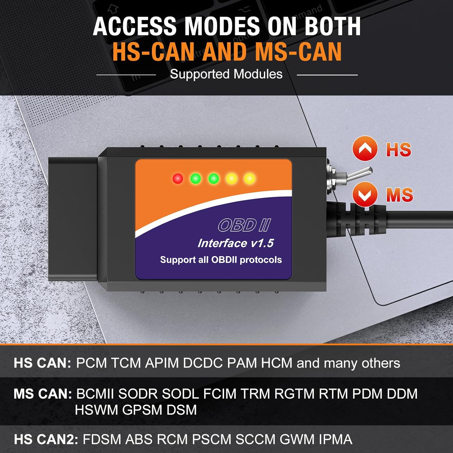 ELM327 OBD2 USB Adapter: An easy portable OBDII USB ELM327 scanner, with MS CAN & HS CAN toggle switch, for clear trouble code and check engine light, diagnostic scan tool help to configure the vehicle data and existing modules.