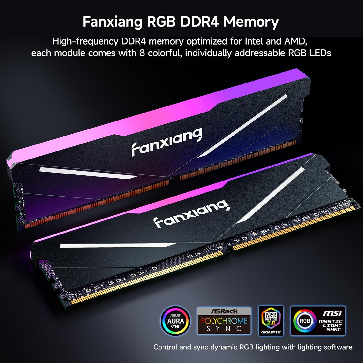 fanxiang DDR4 RAM, 16GB (1x16GB) RGB RAM DDR4 3600MHz CL18 V1.35, Desktop Gaming Machine Overclocking Computer Memory, Intel XMP 2.0 & AMD Compatible – Black