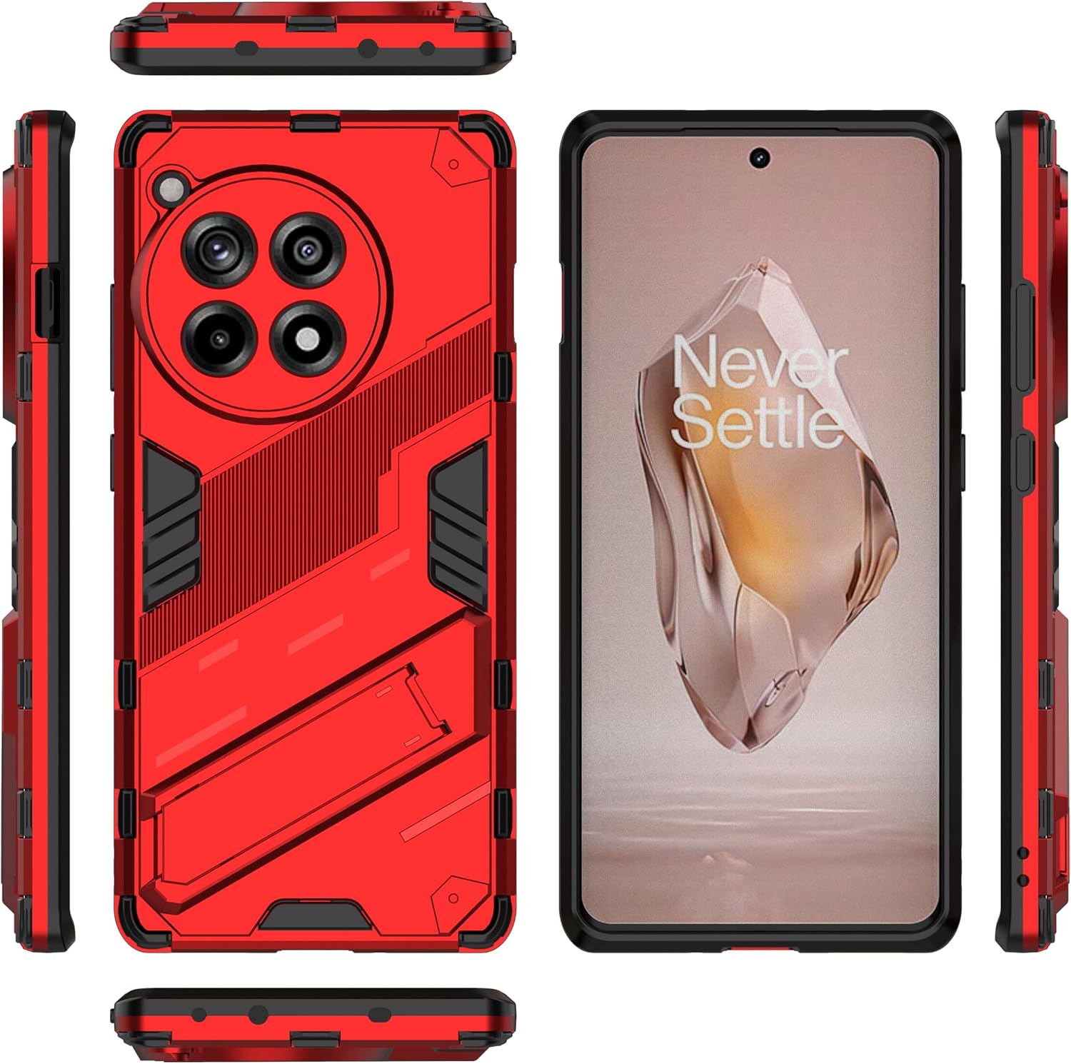 for OnePlus 12R 5G Case with Screen Protector, Armor Series Case [Built-in Kickstand] [Dual-Layer Design] [Camera Protection] [Shock-Absorbing Corners] Full Body Protective Phone Cover, Red