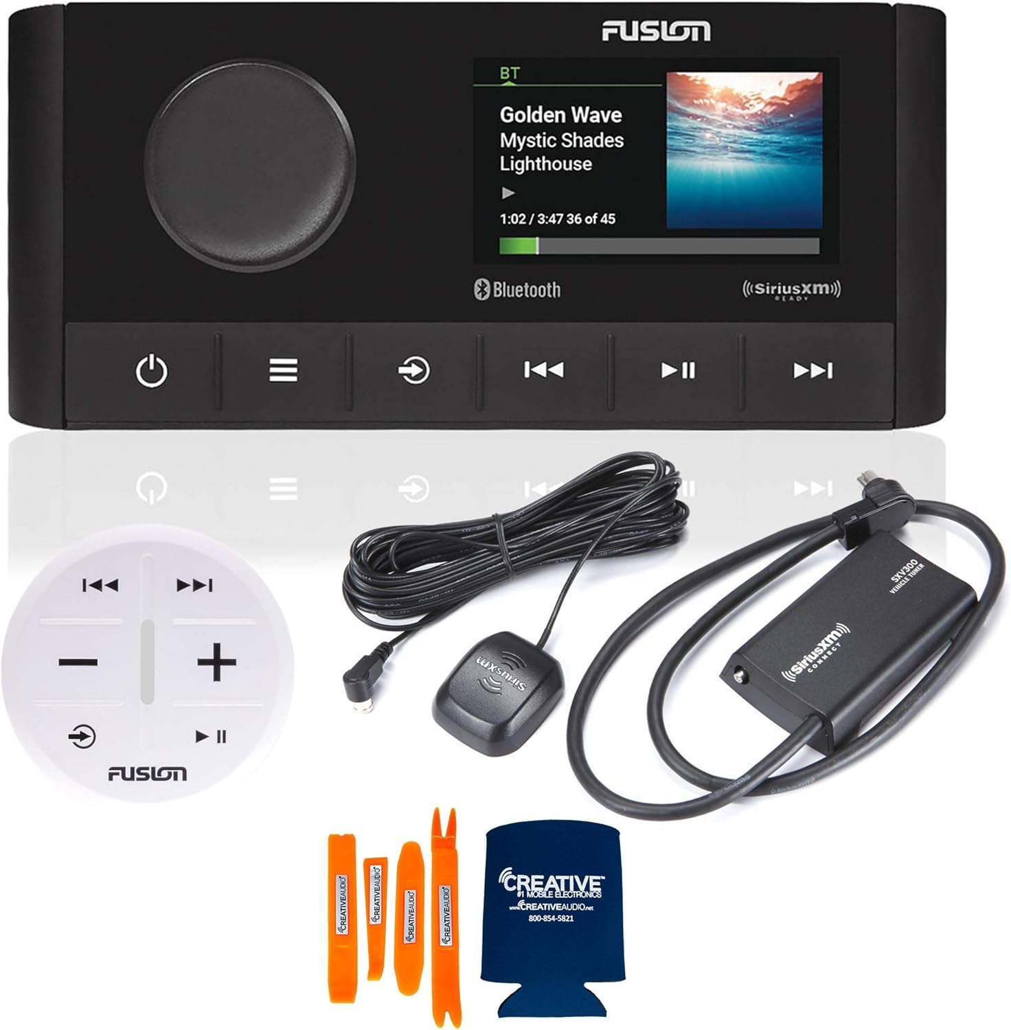 Fusion MS-RA210 Marine Entertainment System with ARX70W White Wireless Remote, and SVX300v1 Sirius XM Tuner – This bundle includes a Fusion MS-RA210 Marine Entertainment System With Bluetooth & DSP, AM/FM, Sirius XM Ready, a Fusion MS-ARX70W ANT Wireless Stereo Remote – White, a Sirius XM SXV300v1 Connect Vehicle Tuner Kit for Satellite Radio, a pry kit, and a Creative Audio.