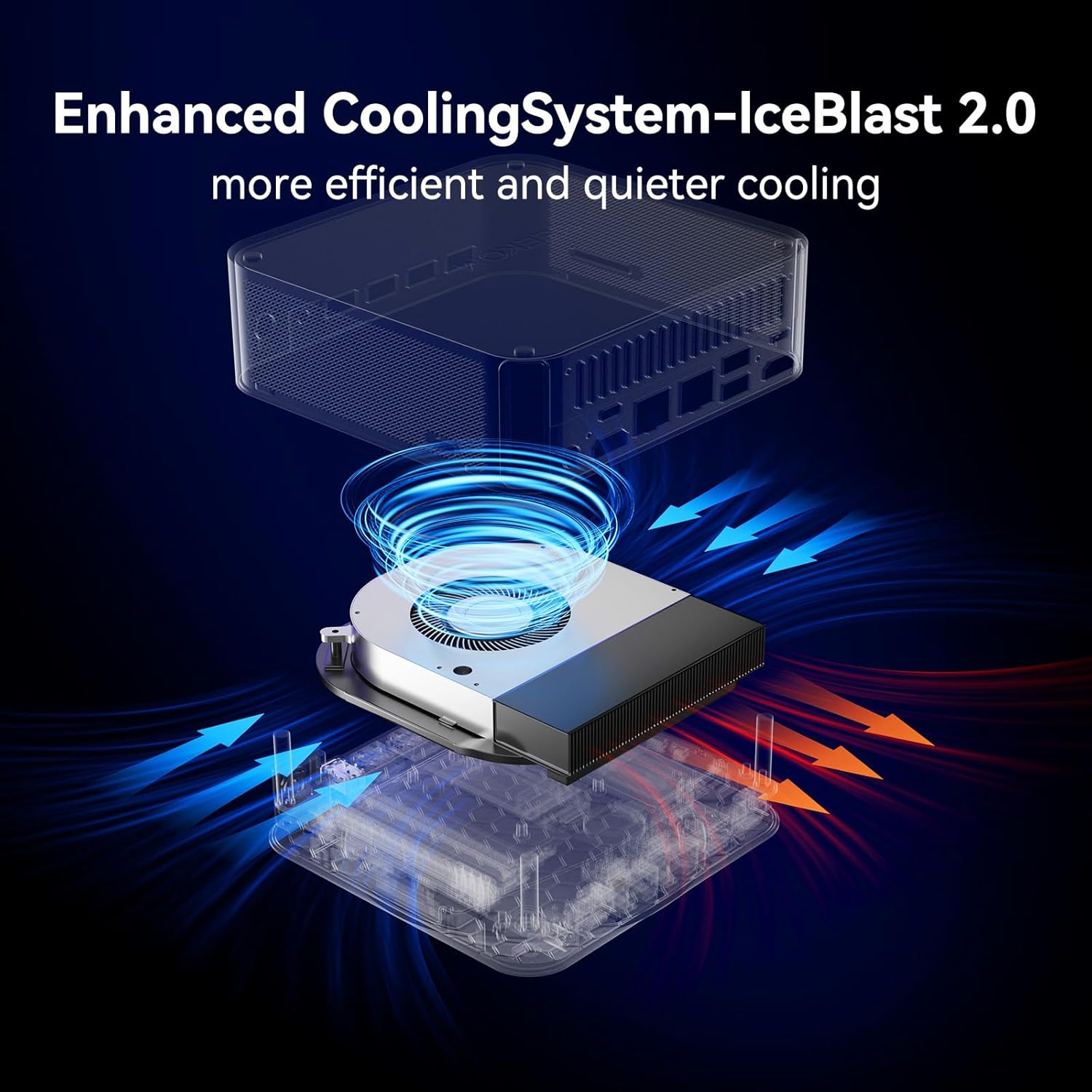 āļøćlceBlast 2.0 & Windows 11 ProćThe GEEKOM GT1 Mega is equipped with IceBlast 2.0 cooling system,which has better heat pipes and larger cooling fan than ever before,which improves cooling efficiency and reduces operating noise by up to 40%, ensuring that you won’t be disturbed while working or gaming.Pre-installed with Windows 11 Pro, enjoy a seamless desktop-like user experience for tasks like browsing, email, document editing, home office work, and photo editing.
