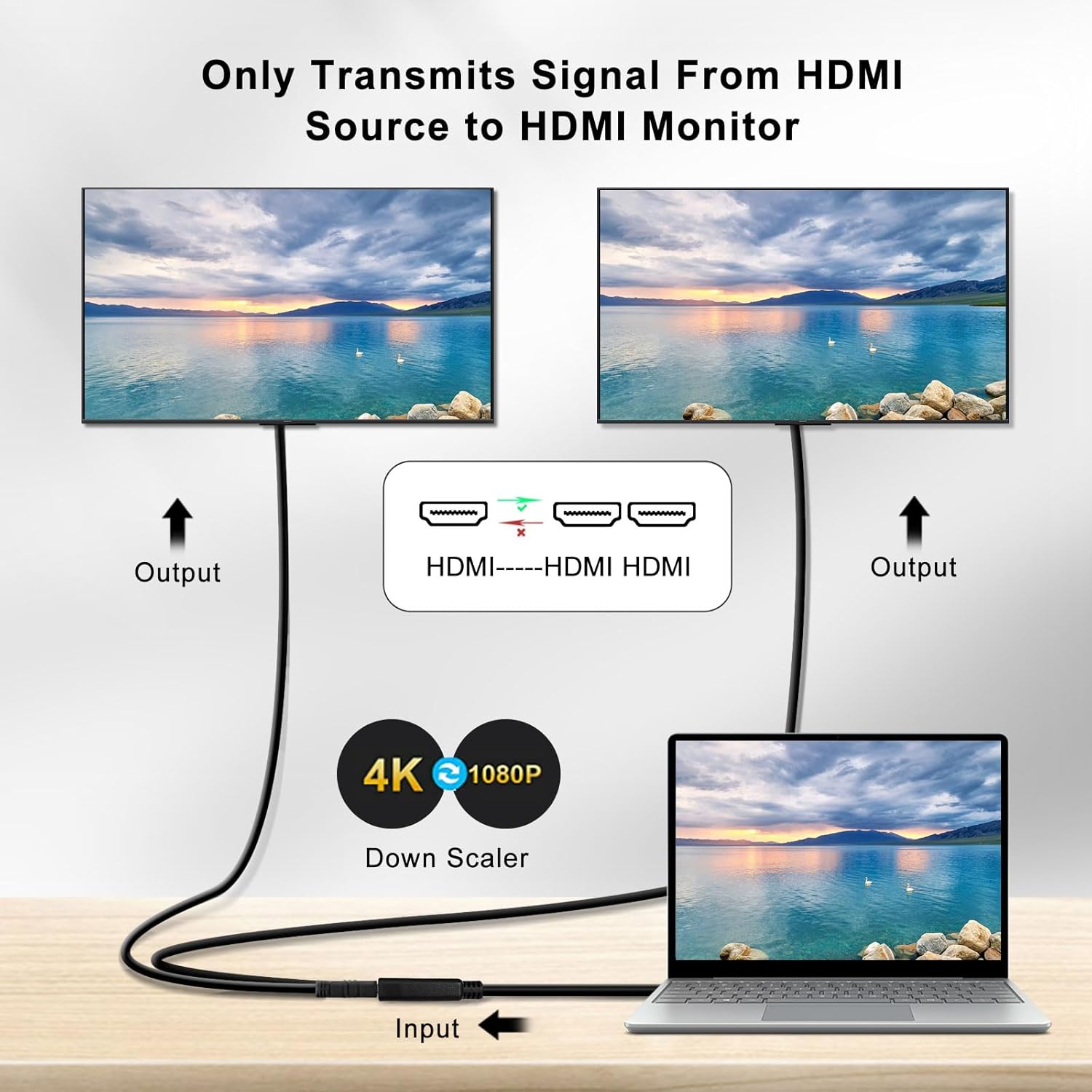 【Wide compatibility】High definition image resolution, such as 720480i, 480P, 720p, 1080i, and 1080P displays. If your display resolution only supports 720p, even if the HDMI splitter supports 1080p, the second display will automatically shrink to 720p. The HDMI splitter is suitable for most devices with standard HDMI interfaces. Ideal for connecting an HDMI compatible device (such as a high-definition DVD, Blu-ray DVD, Xbox, xbox 360, ps3, stb, laptop, high-definition TV)