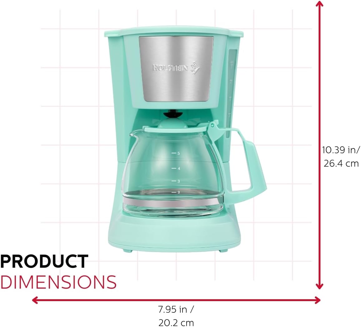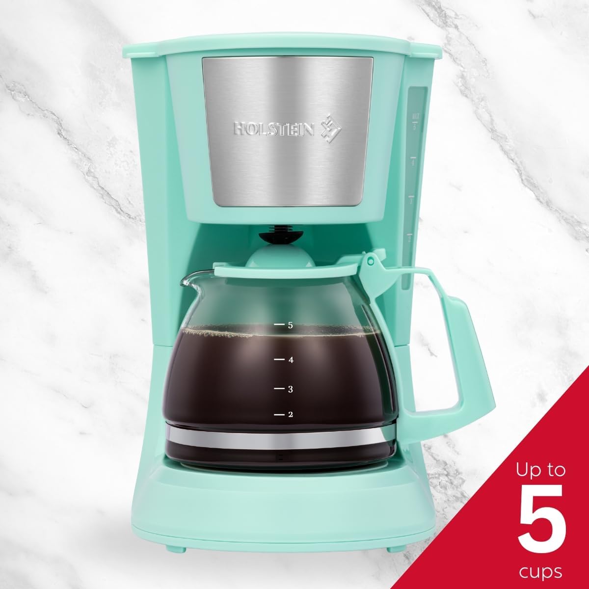Holstein Housewares – 5 Cup Drip Coffee Maker – Convenient and User Friendly with Permanent Filter, Borosilicate Glass Carafe, Water Level Indicator, Auto Pause/Serve and Keep Warm Functions, Mint