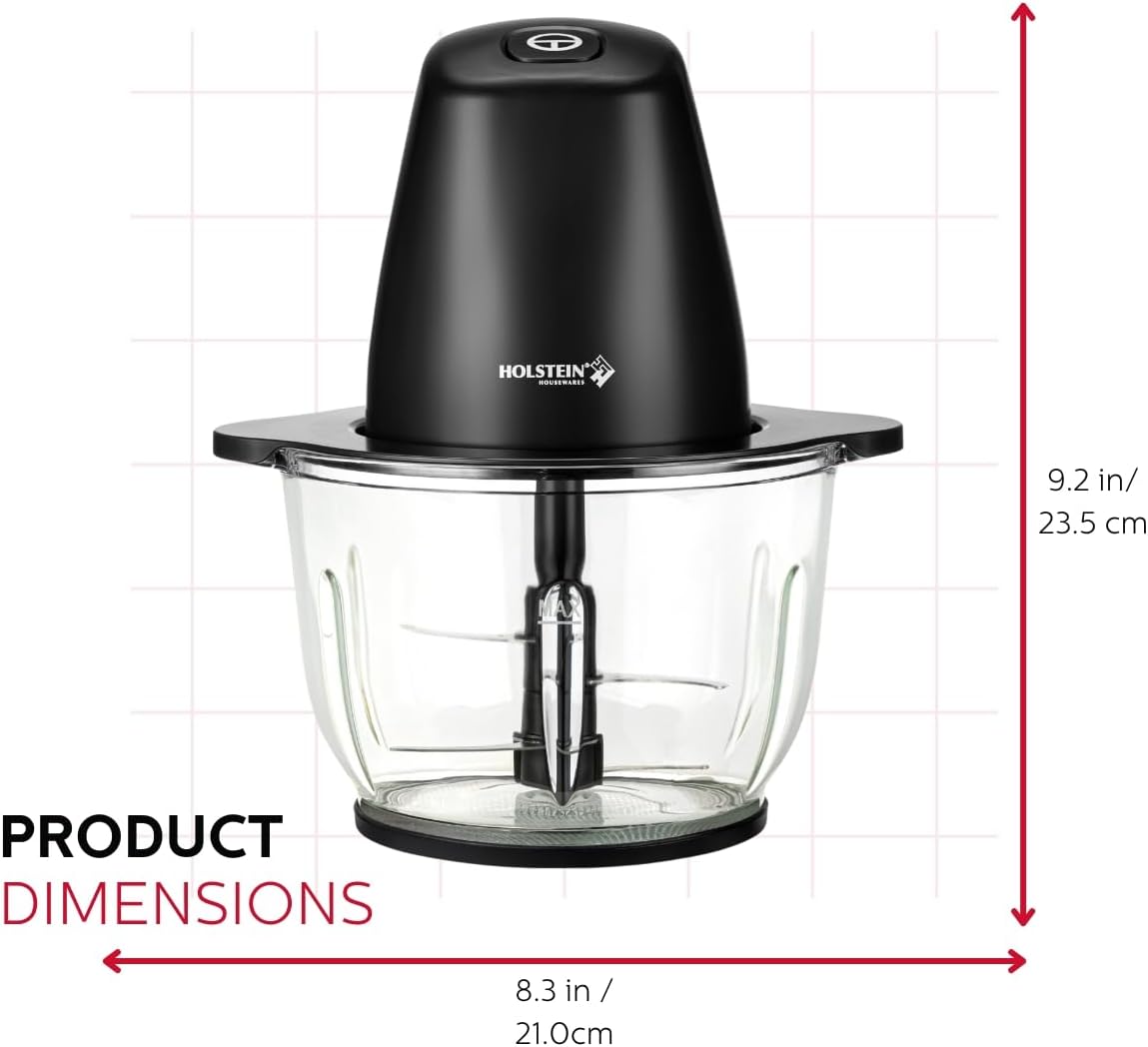 Holstein Housewares Electric Food Chopper – 1.9 QT, 8 Cup, Black, High-Powered Mini Food Processor for Chopping, Dicing & Blending, Compact & Easy to Use for Quick Meal Prep 250W