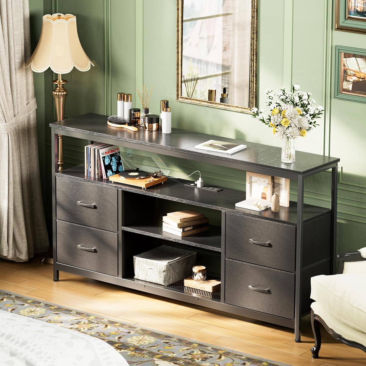 【Dresser with Power Outlets】Tired of tangled wires? Our TV entertainment center comes equipped with 4 AC outlets, 2 USB ports and 1 Type-C ports, turning it into a charging hub for your TV, Wi-Fi router, and gaming gears. Keep everything organized on the open shelf, maintaining a clutter-free TV console table