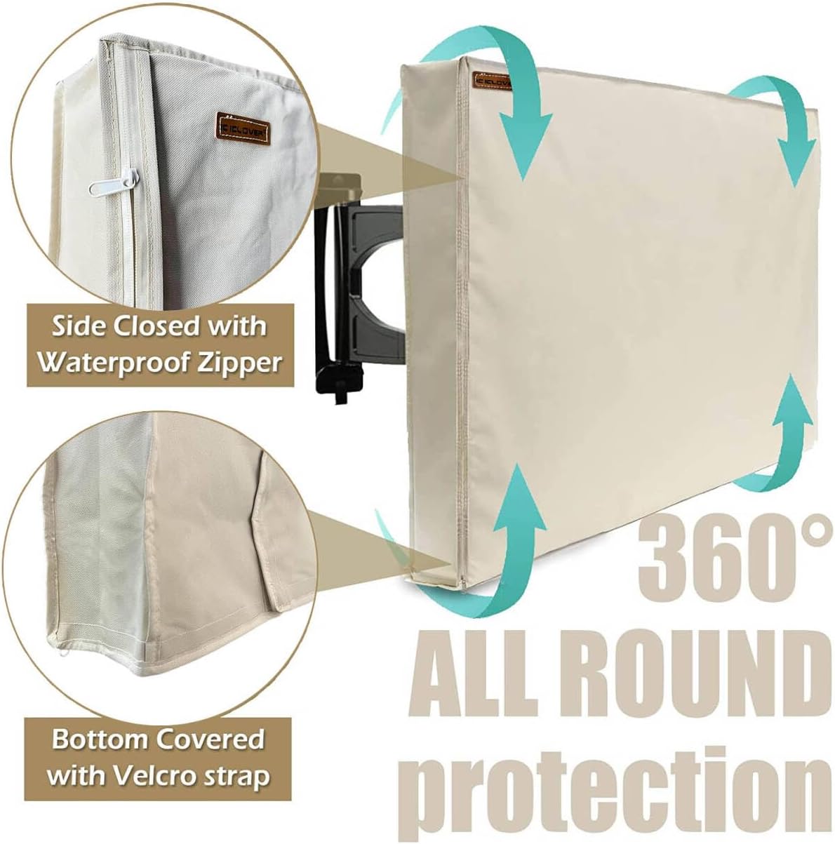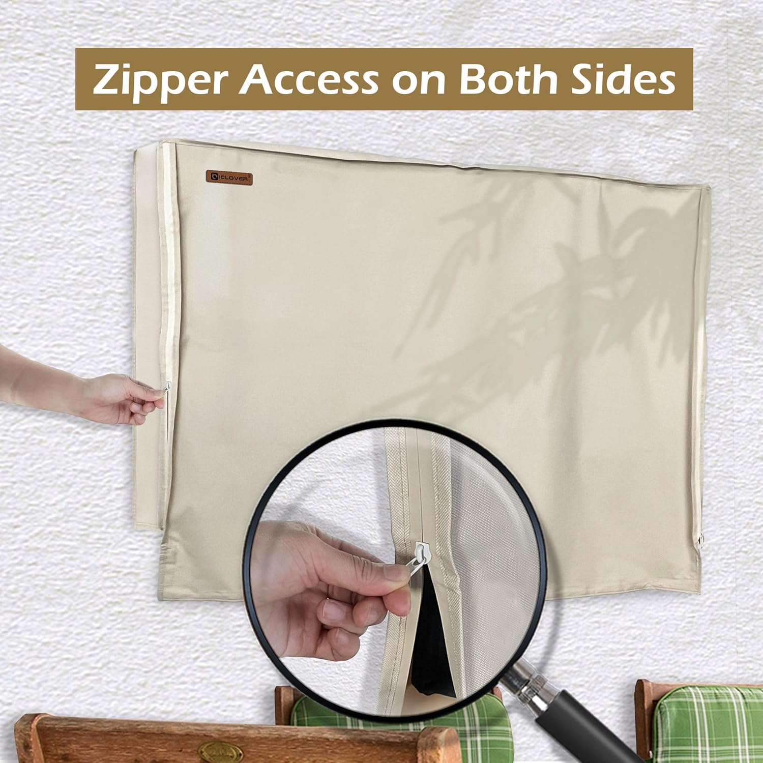 EASY ZIPPER ACCESS: The TV outdoor cover has two zippers on both sides that not only provide better guard but also make it much easier to use. No more bother to remove the entire cover when you watch TV, just pull open the zippers and lift the front cover, then enjoy the programs freely.