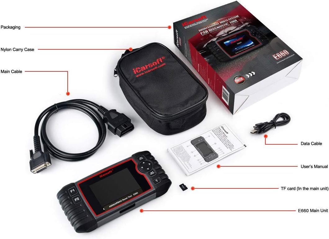 iCarsoft E660 ABS Diagnostic Tool, OBD2 Scanner for ABS/SRS/SAS/EPB/Engine, Car Code Reader with SAS/EPB Reset/Battery Test, Auto Diagnostic Car Scanner Read Clear Fault Codes,Free Upgrade