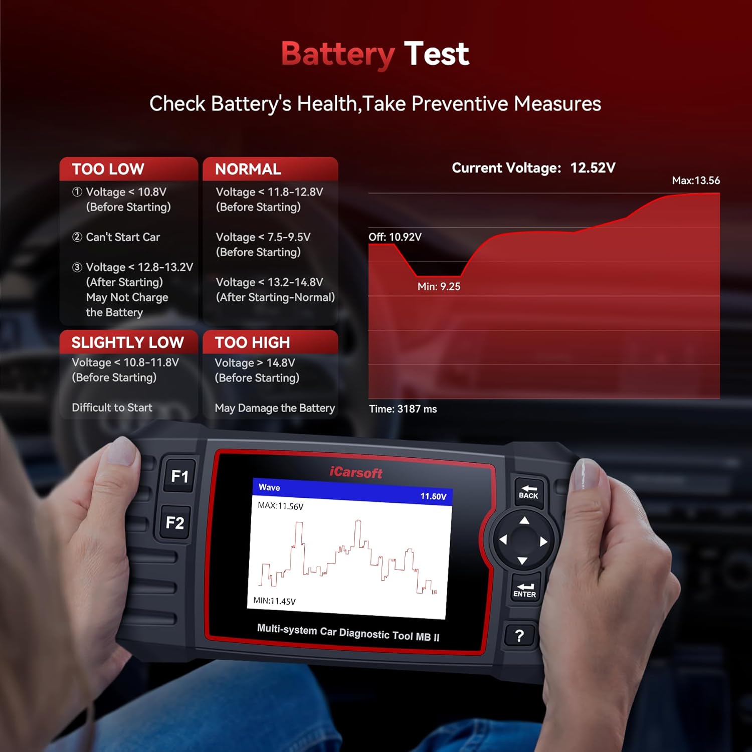 【Vehicle Diagnostic Tool fit for Mercedes Benz Owner】What enhanced updations for iCarsoft MBII (Enhance Version) for Mercedes Benz/Sprinter/Smart :✅ Lifetime software Free Update+Lifetime hardware free repair ✅Full System In-depth Diagnosis✅5 Resets Functions✅All OBD2 Functions✅Upgraded version of MBII scanner.