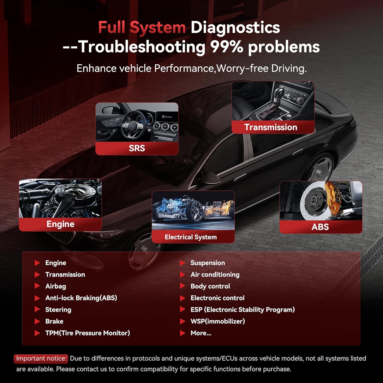【Warm Tips】Because car manufacturers often update vehicle systems, you may encounter functionality limitations. We recommend updating the scanner’s software to ensure full compatibility.