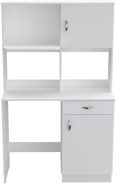 EFFICIENT ORGANIZATION: Designed with 2 open compartments are ideal for a microwave and a tabletop coffee maker; 4 shelves and 1 drawer stow away snacks, supplies, paper goods, and small appliances