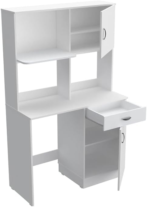 Inval Ambrossia Breakroom Kitchenette Cabinet for Mini Fridge and Microwave with Adjustable Storage Shelves, 16”H x 21.73″ W x 14.92”D, White
