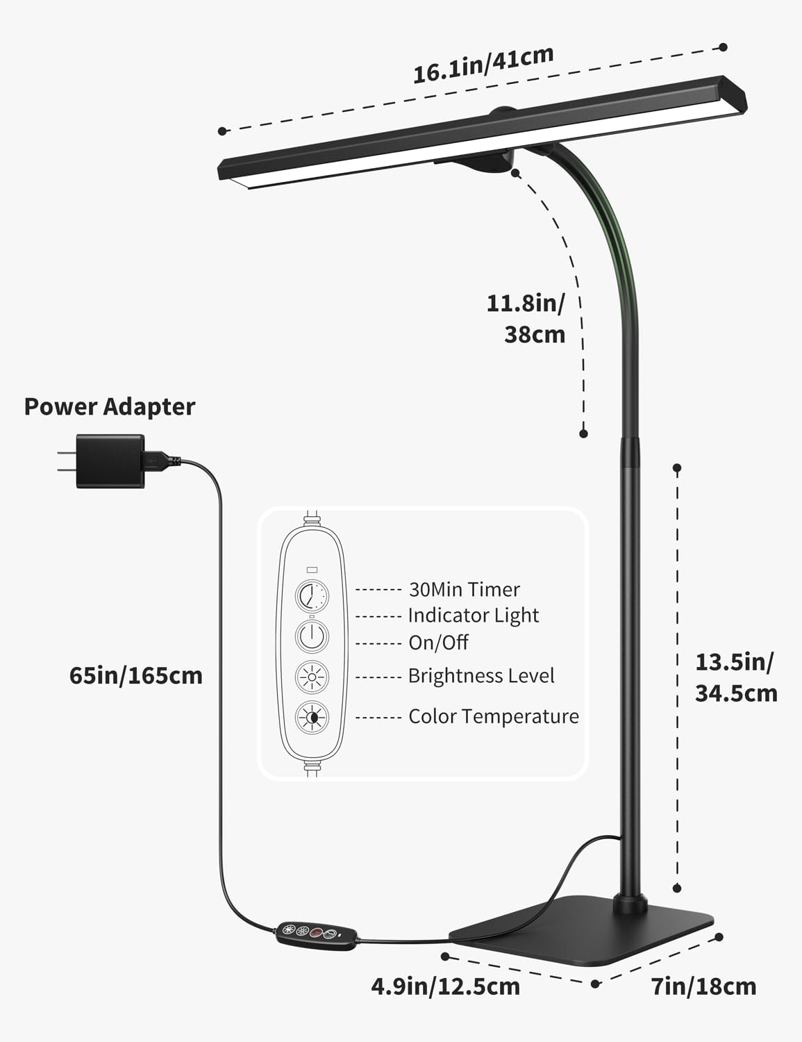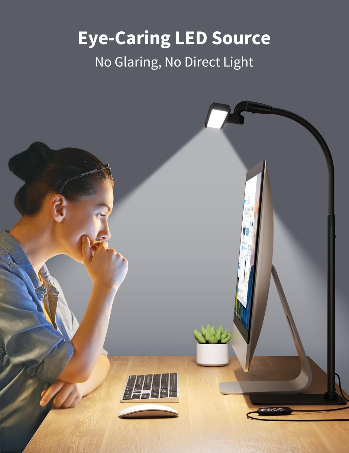 5 level adjustable brightness lighting is handheld all the working need, wide illumination, adjustable flexible neck, compatible with 29inch monitor and below. Suitable for office desk, workspace.