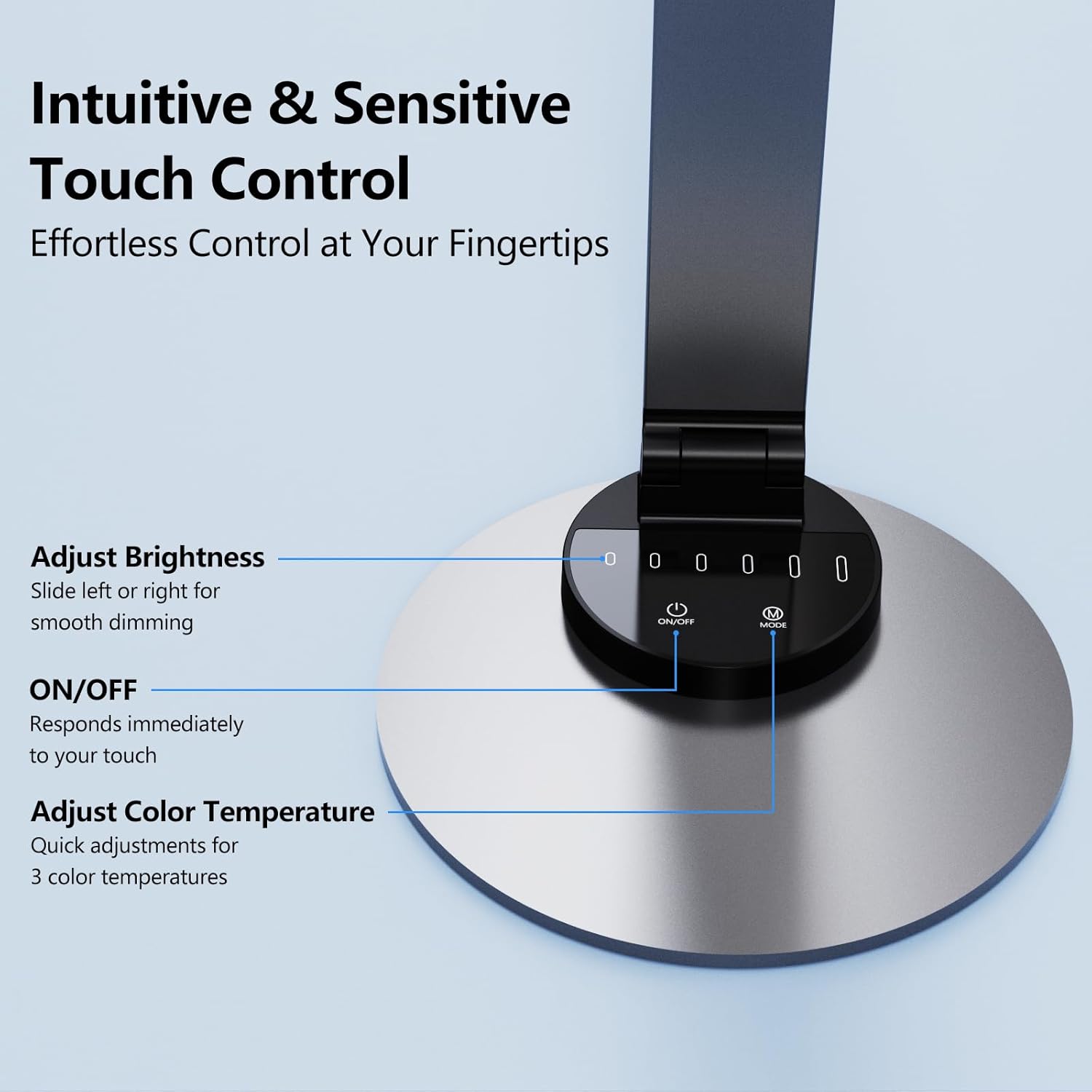 【Convenient At Fingertips】: Crafted from premium aluminum and PC material, this modern desk lamp offers a sleek, ultra-slim design that makes it a perfect addition to any modern workspace. The smart touch button provides easy control, allowing you to adjust the light with a simple touch and swipe. Perfect for those seeking a modern desk lamp that blends functionality with style, making it ideal for home offices or study spaces