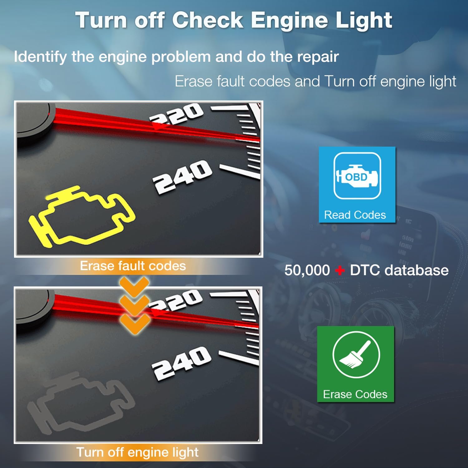 Professional Level Diagnostic Tool with Enhanced Coverage and Functionality – The Scanner empowers home mechanics, automotive enthusiasts, and service & repair technicians with professional-level functionality. It is a vehicle code reader that reads and clears OBD engine codes and displays all vehicle information from when a trouble code was triggered.
