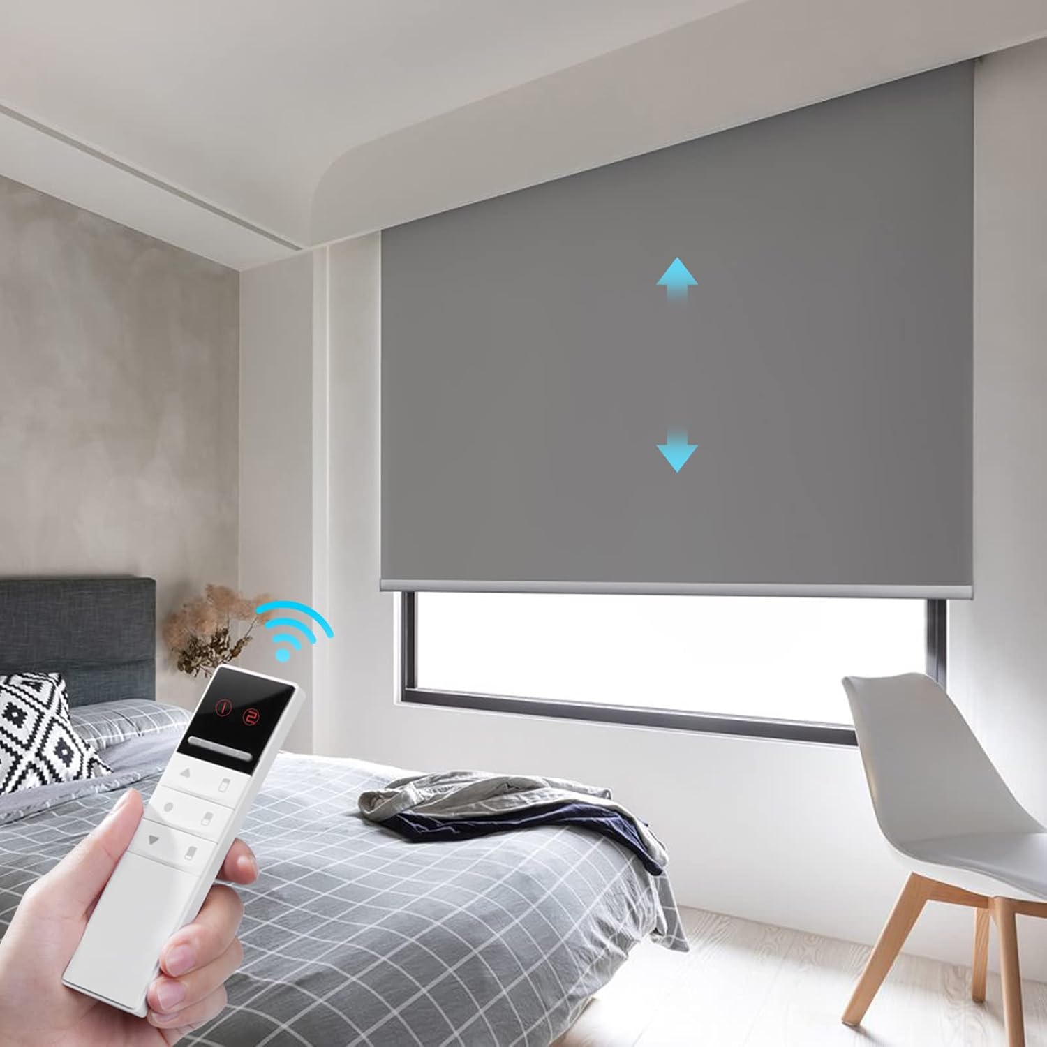 Motorized Blackout Blinds with Remote Smart Blinds Control Wireless Rechargeable Roller Blinds Blinds for Windows,Office,Home,Restaurant,Customized,3911(Drak Grey)