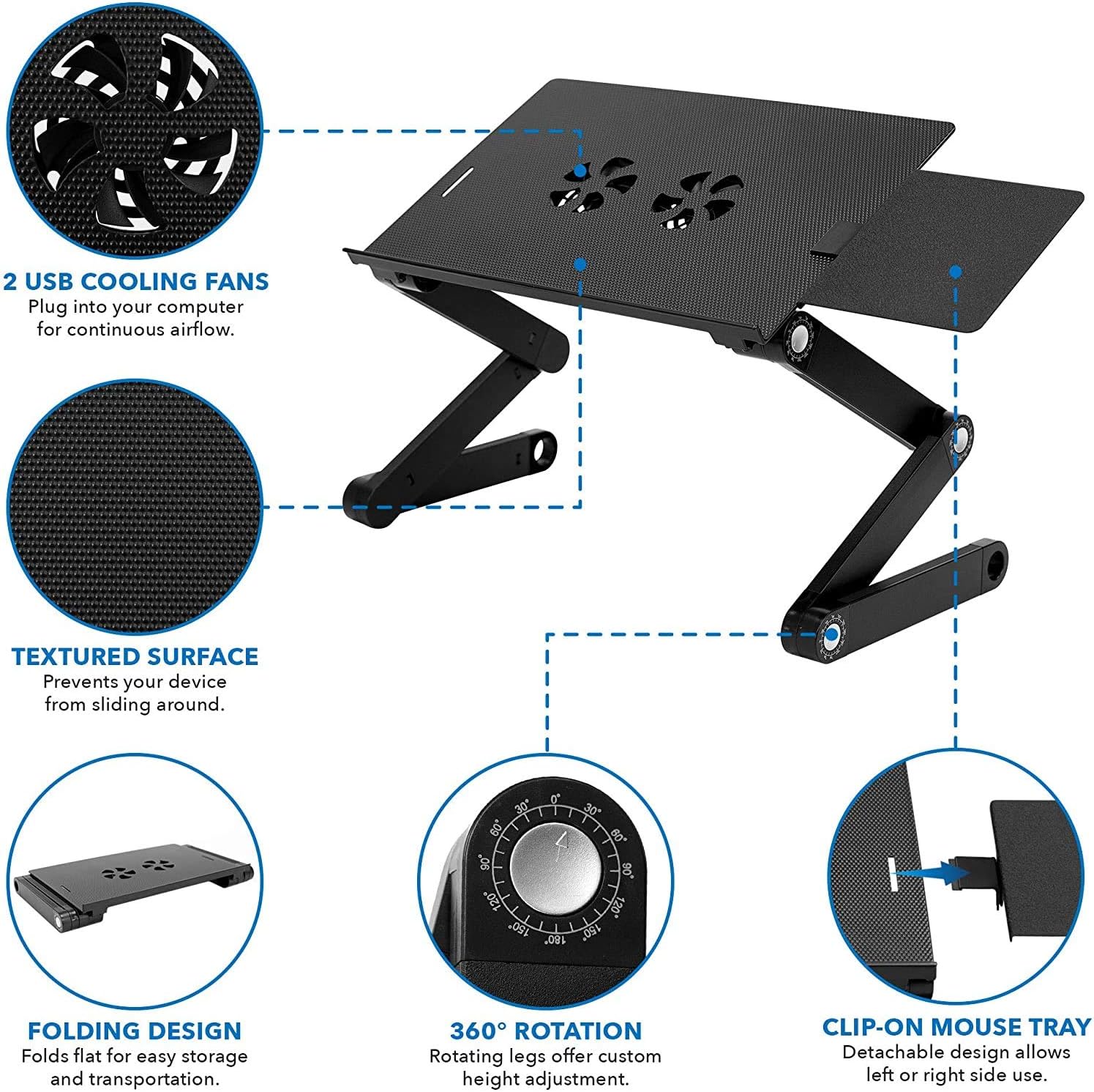 Mount-It! Adjustable Laptop Stand with Built-in Cooling Fans and Mouse Pad Tray, Easy to Use Ergonomic Laptop Stand for Bed, Couch, and Table, Portable and Lightweight