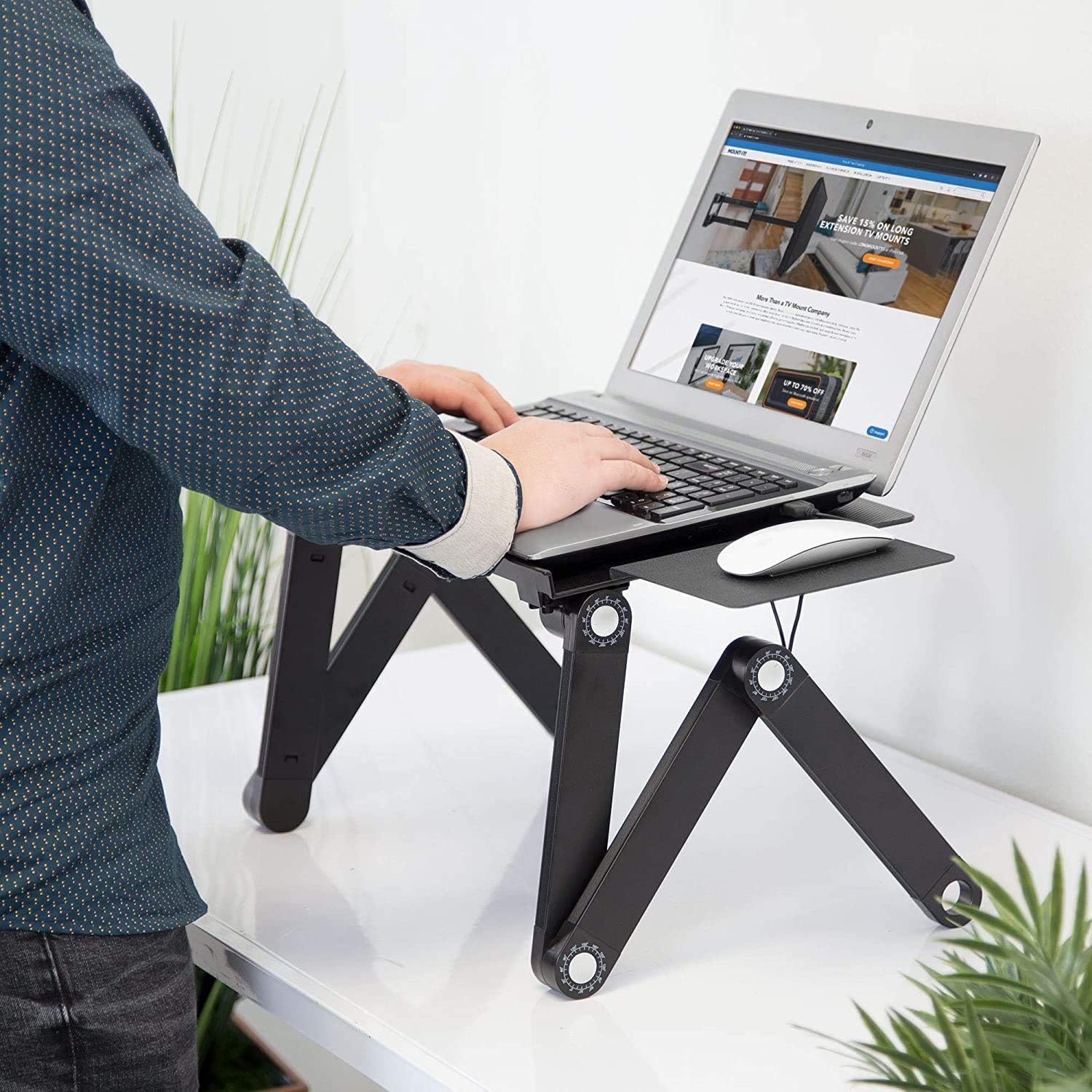 FULLY ADJUSTABLE – Say goodbye to the days where you strain your neck to view your laptop! This adjustable desk for laptops gives you the ability to create a comfortable and ergonomic working position. You can make the stand more compact if you are lying in bed, and extend it further if you decide to use it as a laptop stand desk.