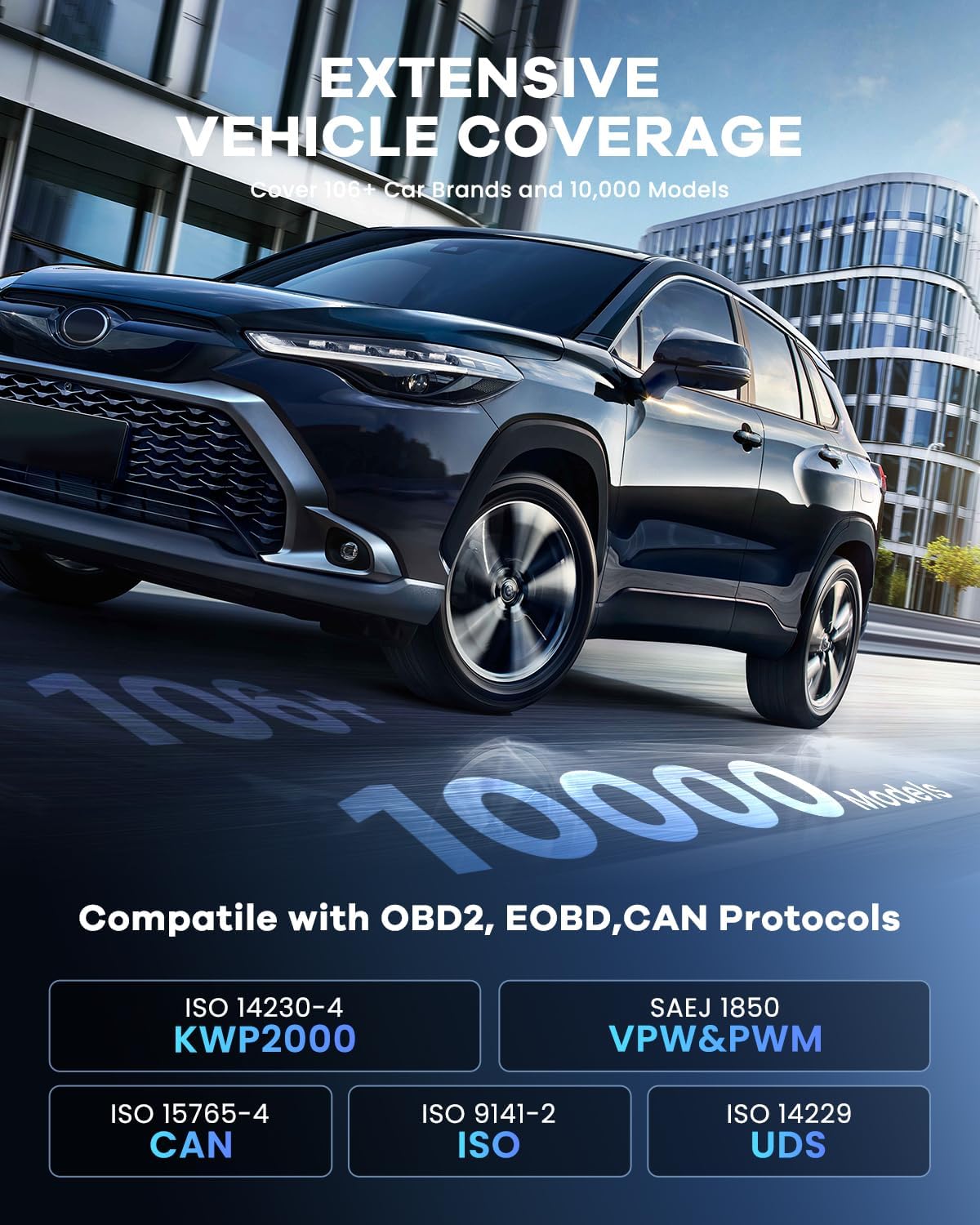 [Worldwide Compatibility & Wireless Update]The scan tool can automatically identify vehicle information with auto VIN and starts auto-diagnose process, and it works on most OBDII-compliant vehicles worldwide in US, Europe, Asia, Africa, Australia for 12V cars,SUV,light truck, hybrids, and even roadster, automatically generate diagnostic report for further analysis. FCA AutoAuth(The scanner does not include an FCA account and you need to register it yourself)