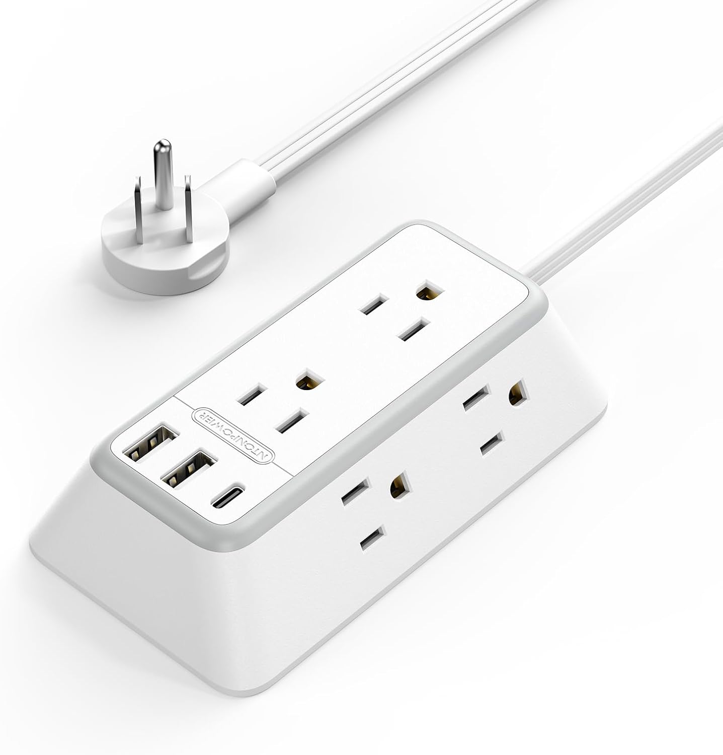 NTONPOWER 10 Feet Extension Cord Flat Plug 3-Sided Power Strips with Surge Protection, Mountable Power Strip with USB, Surge Protector Long Extension Cord with USB C for Home Office Desk, White