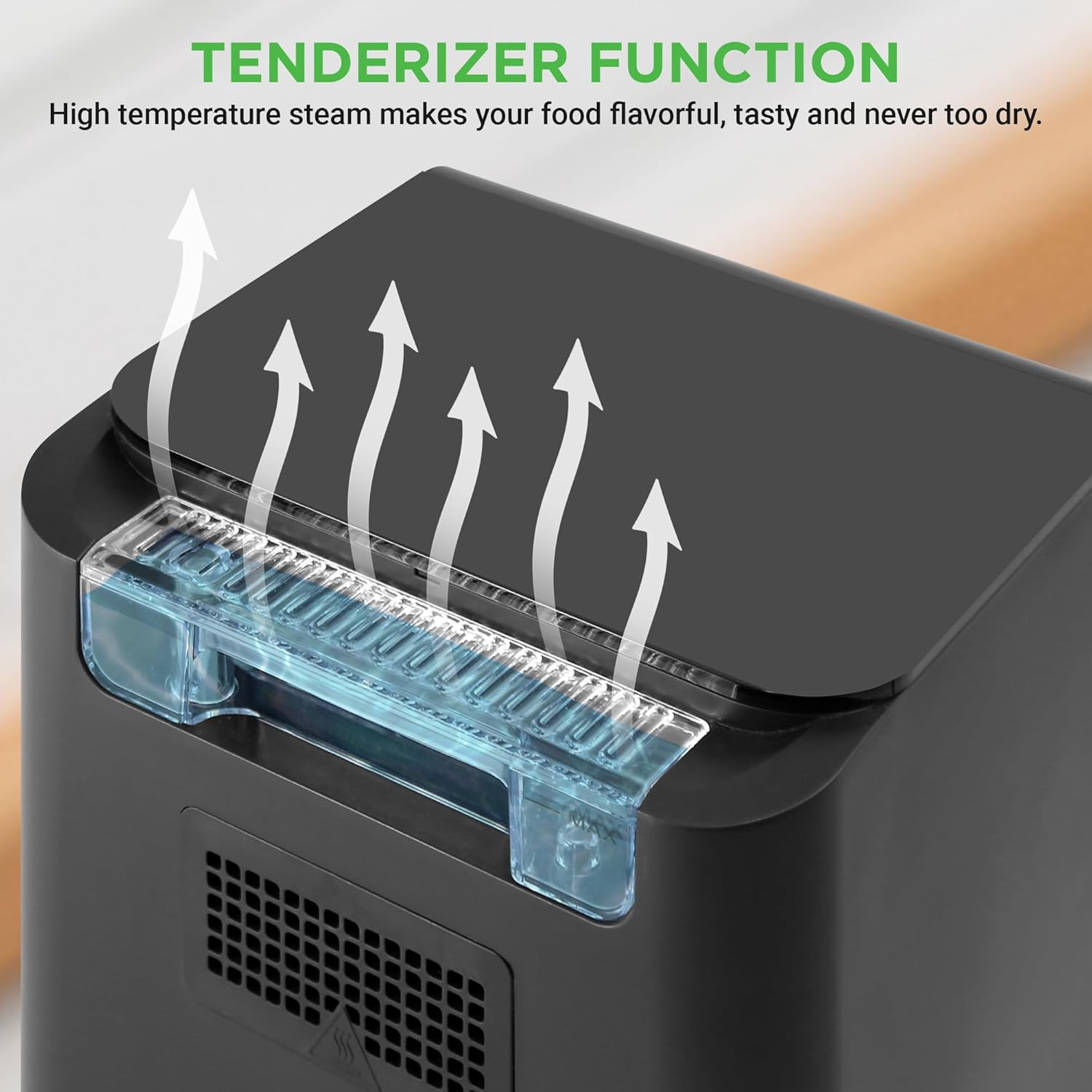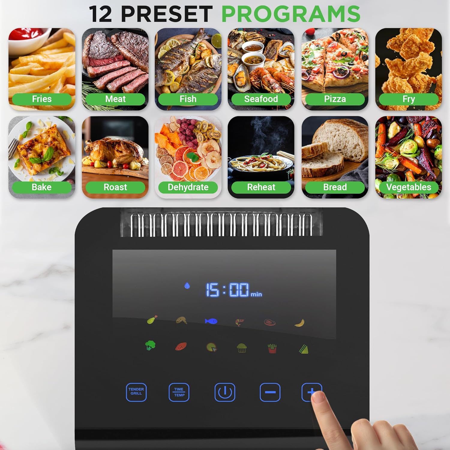 SAFETY MEETS CONVENIENCE – This oil-free air fryer ensures safety with automatic shut-off and overheat protection. Cool-touch handles ensure ease of use. High-definition LED touch screen and customized cooking display action make cooking a breeze.