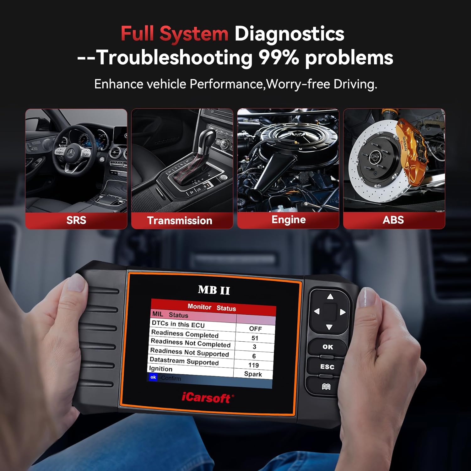 FAST DIAGNOSIS CAR SCANNER – iCarsoft POR II (2024 Newest Launched) Auto Vehicle code reader tool for Porsche can display your vehicle’s essential information and read/clear fault codes in real-time, helps you easily find and fix the problem of ABS/ SRS/ Engine/ Transmission/ Airbag, diagnose full system and playback with live graphic form.