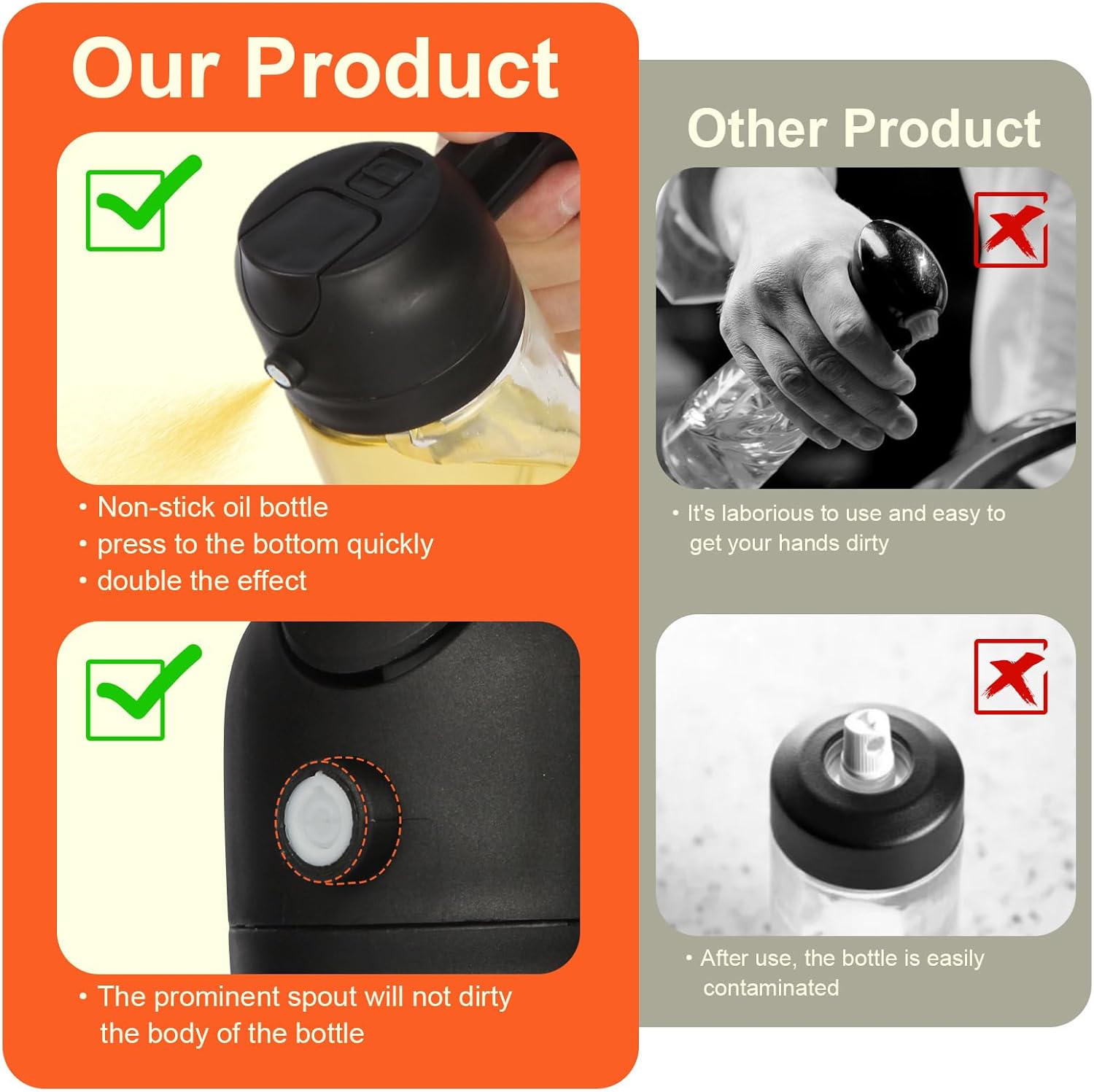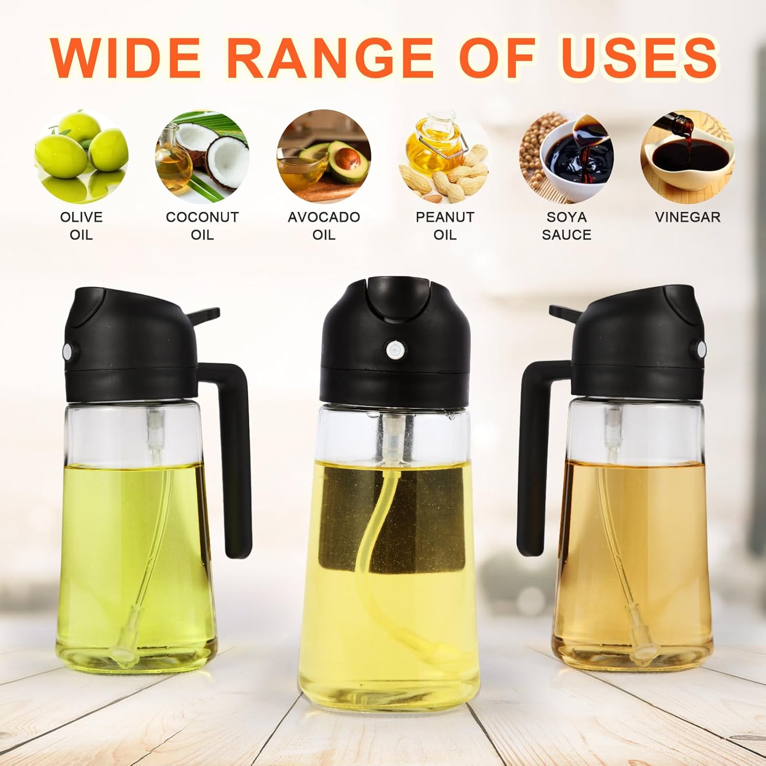 Oil Sprayer for Cooking,2 in 1 Olive Oil Dispenser and Oil Sprayer,16oz/470ml Premium Glass Oil Bottle, Oil Spray Bottle,Mist Olive Oil Dispenser for Kitchen,Air Fryer,Salad, Grill. (black + white)