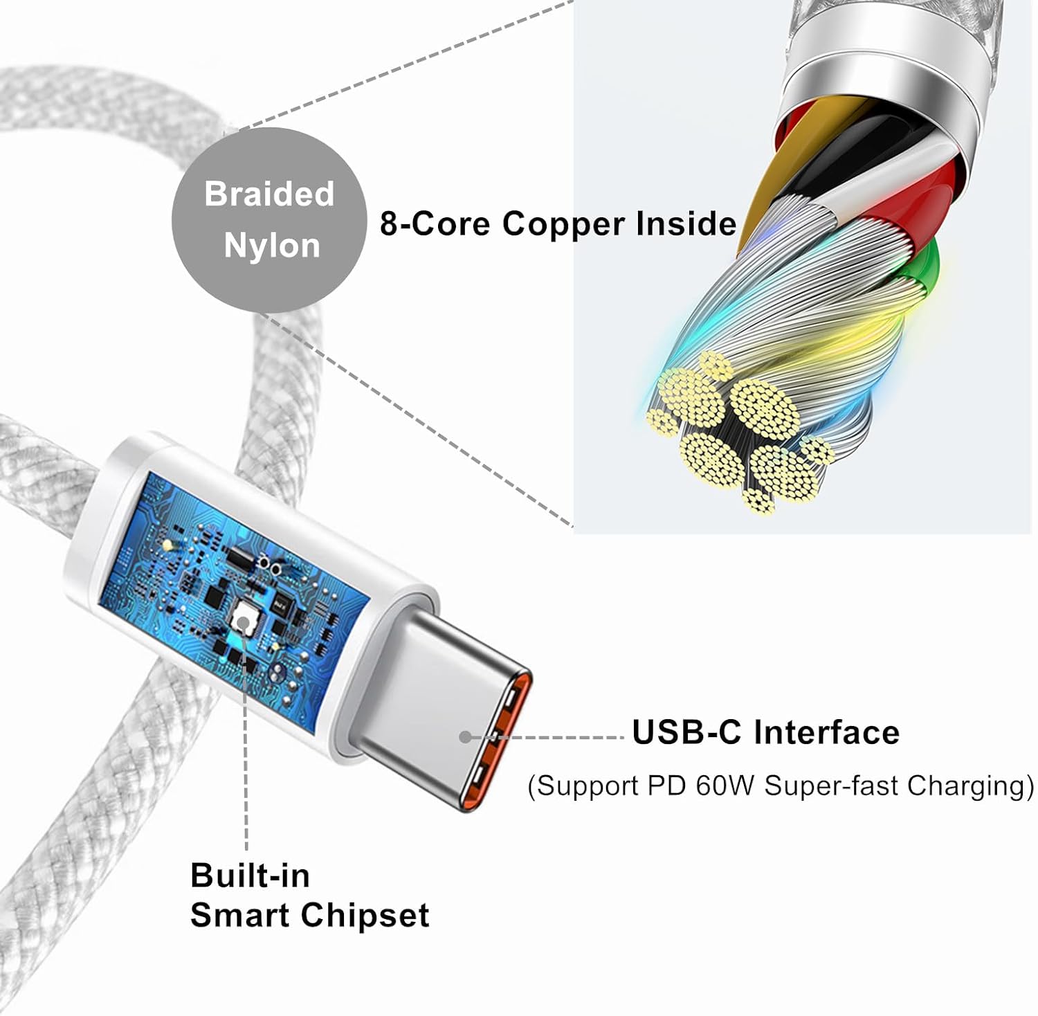 PD 20W USB C Charger Cable for Oculus Quest 3 2 Pro VR Headsets – Dual Port USB + Type C Fast Charger with C to C Charging Cable, 3.3ft Long