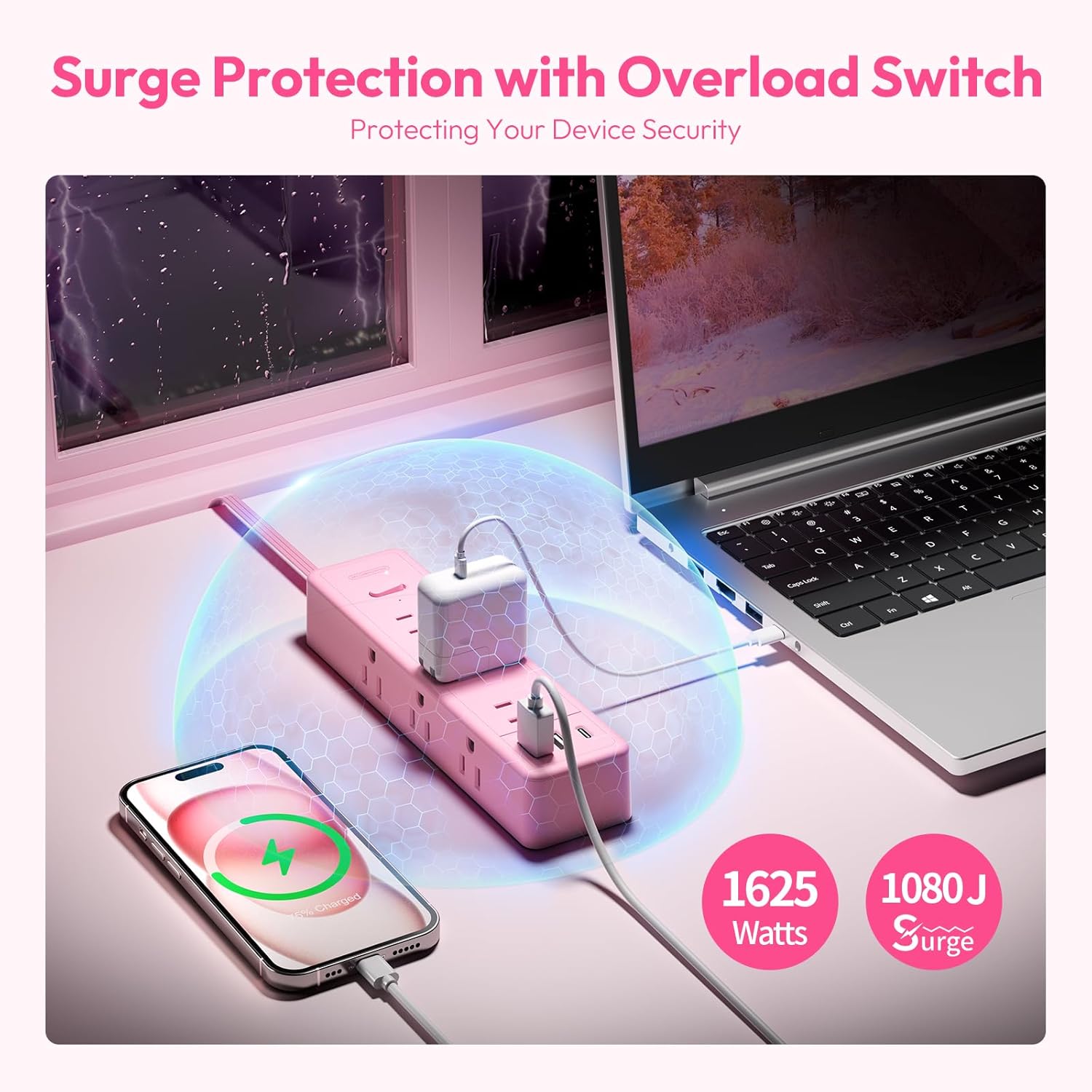 【Pink Power Strip & Pink Lovers 】If you are looking for creative and fun decoration ideas for the room, this is a great pink decoration and you will love the pink power strip with USB charging. The best gift for your kids or pink lovers. The unique pink power strip is perfectly suitable for women’s/ladies’/girls’ bedroom, vanity desk, or nightstand.