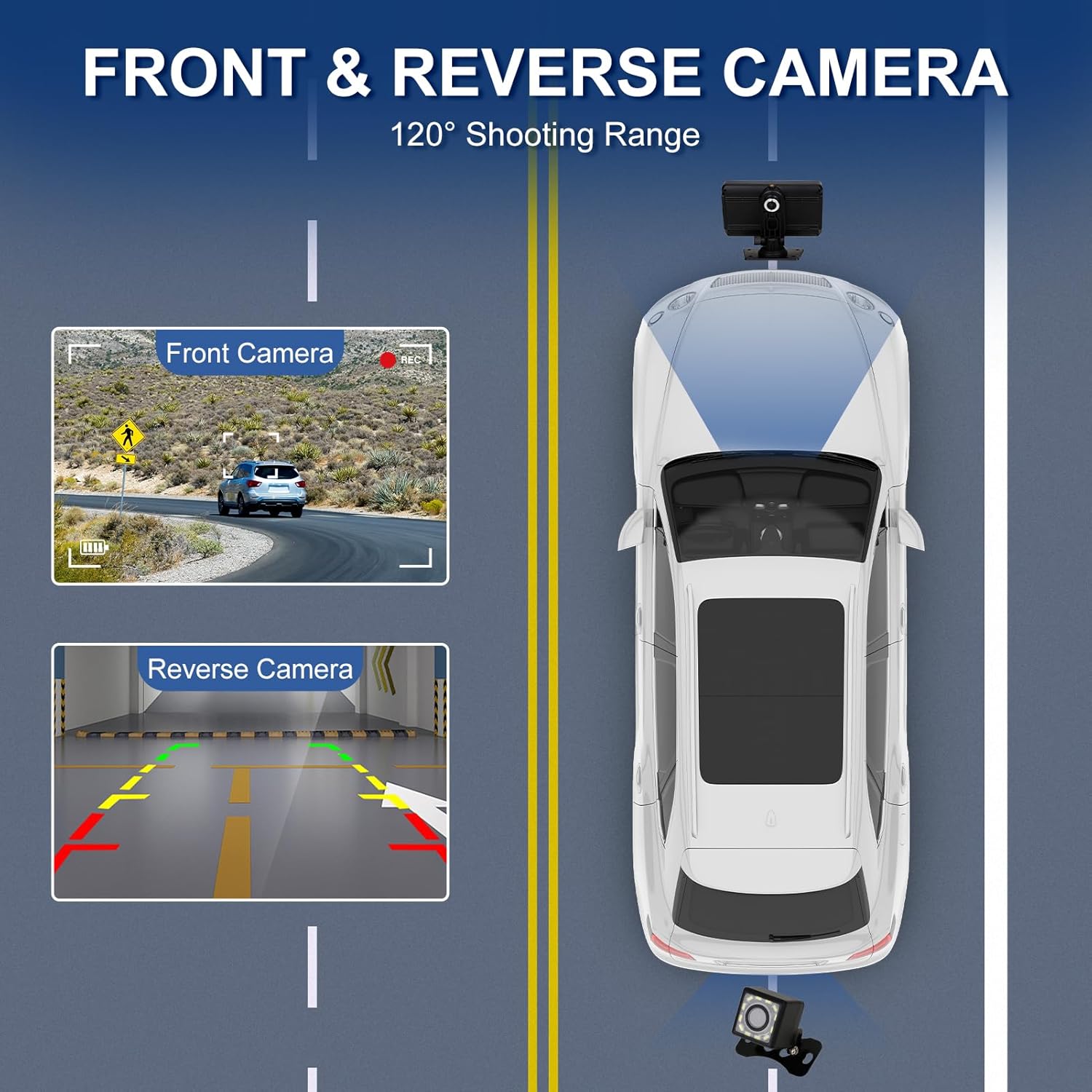 【Versatile Functions】Equipped with front and reverse cameras, our driveplay enables driving and reverse image recording. It also features useful functions like vehicle ahead reminders, collision sensors, and parking monitoring