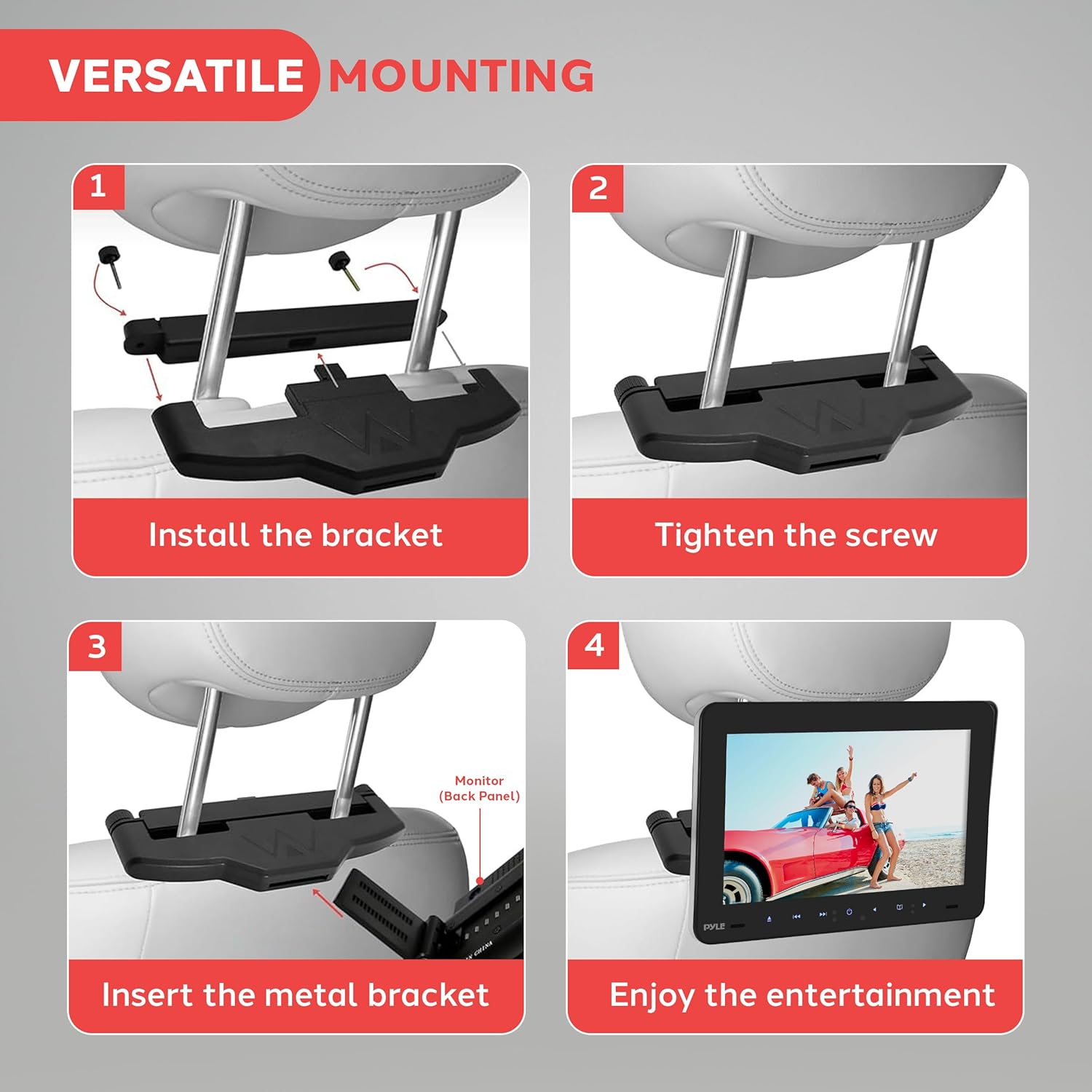 Pyle Universal Car Headrest Mount Monitor-9.4 Inch Vehicle Multimedia CD DVD Player-Smart Audio Video Entertainment System w/HDMI & Hi-Res TV LCD Screen – Includes Mounting Bracket – PLHRDVD904,Black