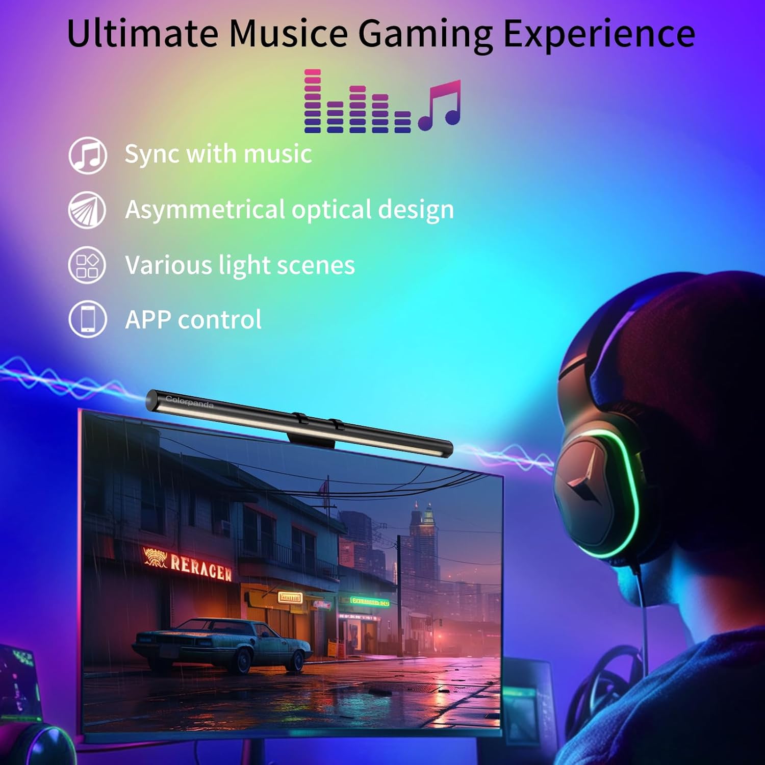 【Brilliant Backlight】There are 30+ light scenes and 16 million DIY colors, create limitless possibilities! This monitor light bar not only makes the work less boring, but also creates an atmosphere and enhances the computer gaming experience.Enhances overall eye comfort, no matter in screen if you are working or relaxing entertaining.