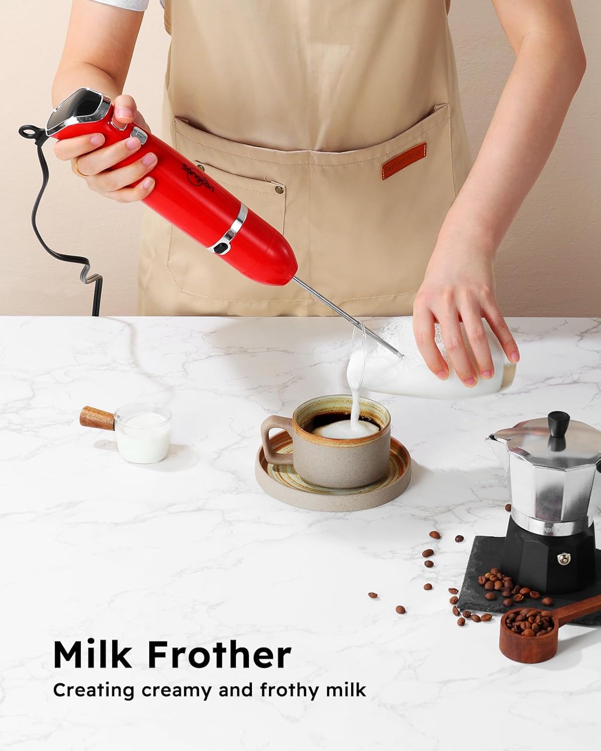 【3-in-1 Hand Blender】Our multifunctional hand blenders immersion comes with three essential attachments: a blending arm, a whisk, and a frother. From crafting delicious beverages to whipping up savory sauces, whether you need a milk frother, electric whisk, electric mixer, or drink mixer, this is the ultimate kitchen companion