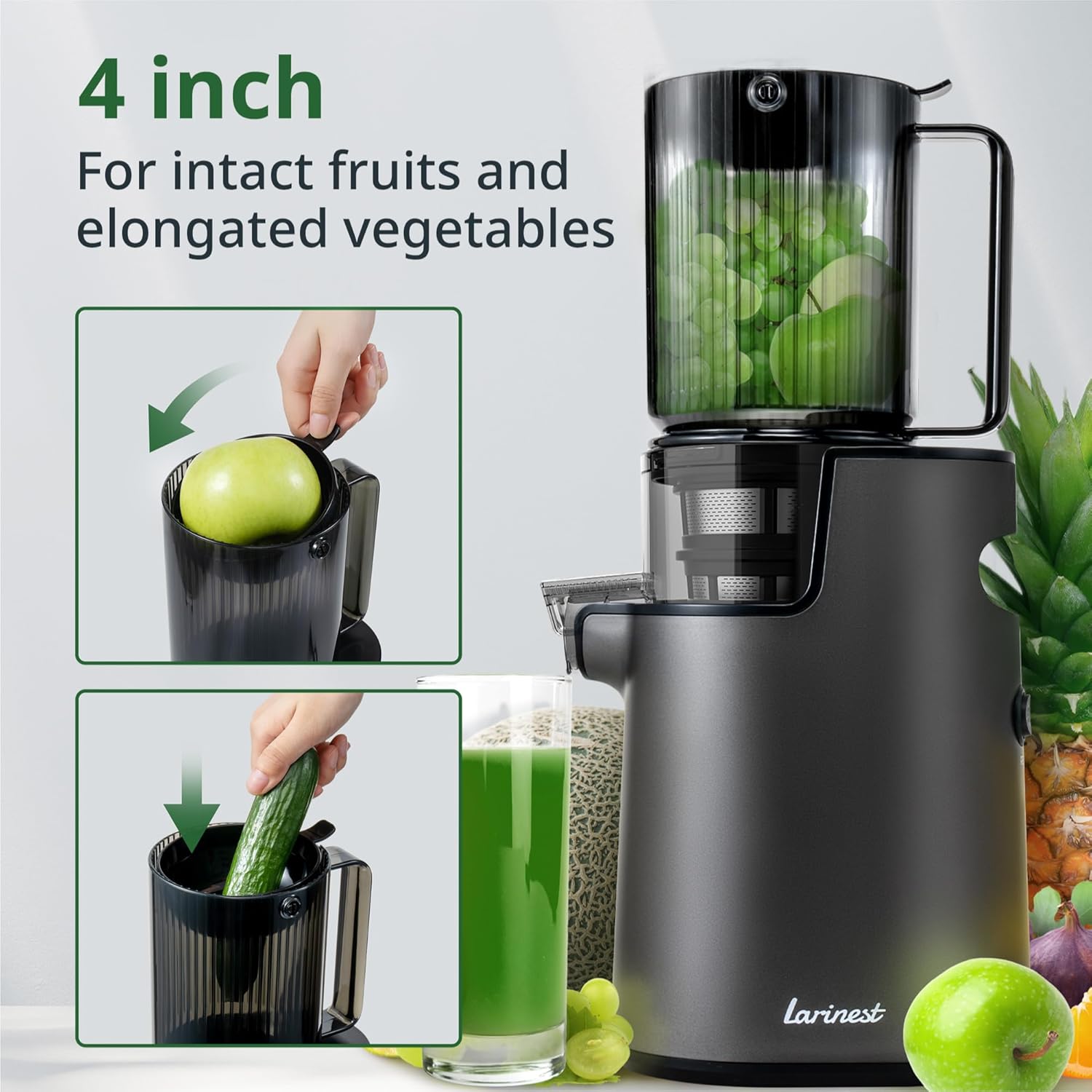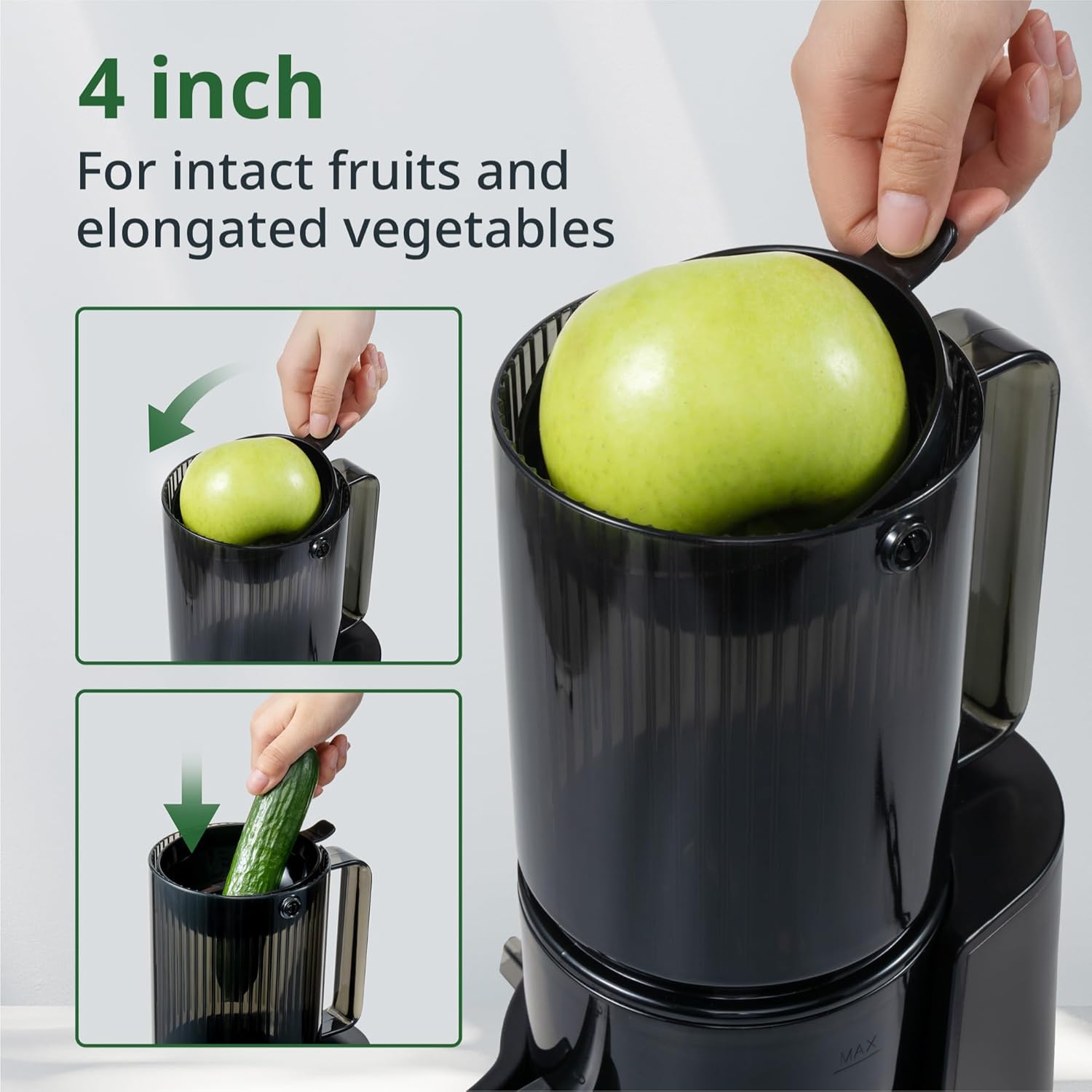 Slow Masticating Juicer Machines, Cold Press Machines with 4″ Wide Chute, Pure Juicer Machine for Vegetables and Fruits, Reverse Function, BPA-Free, JC01, Grey