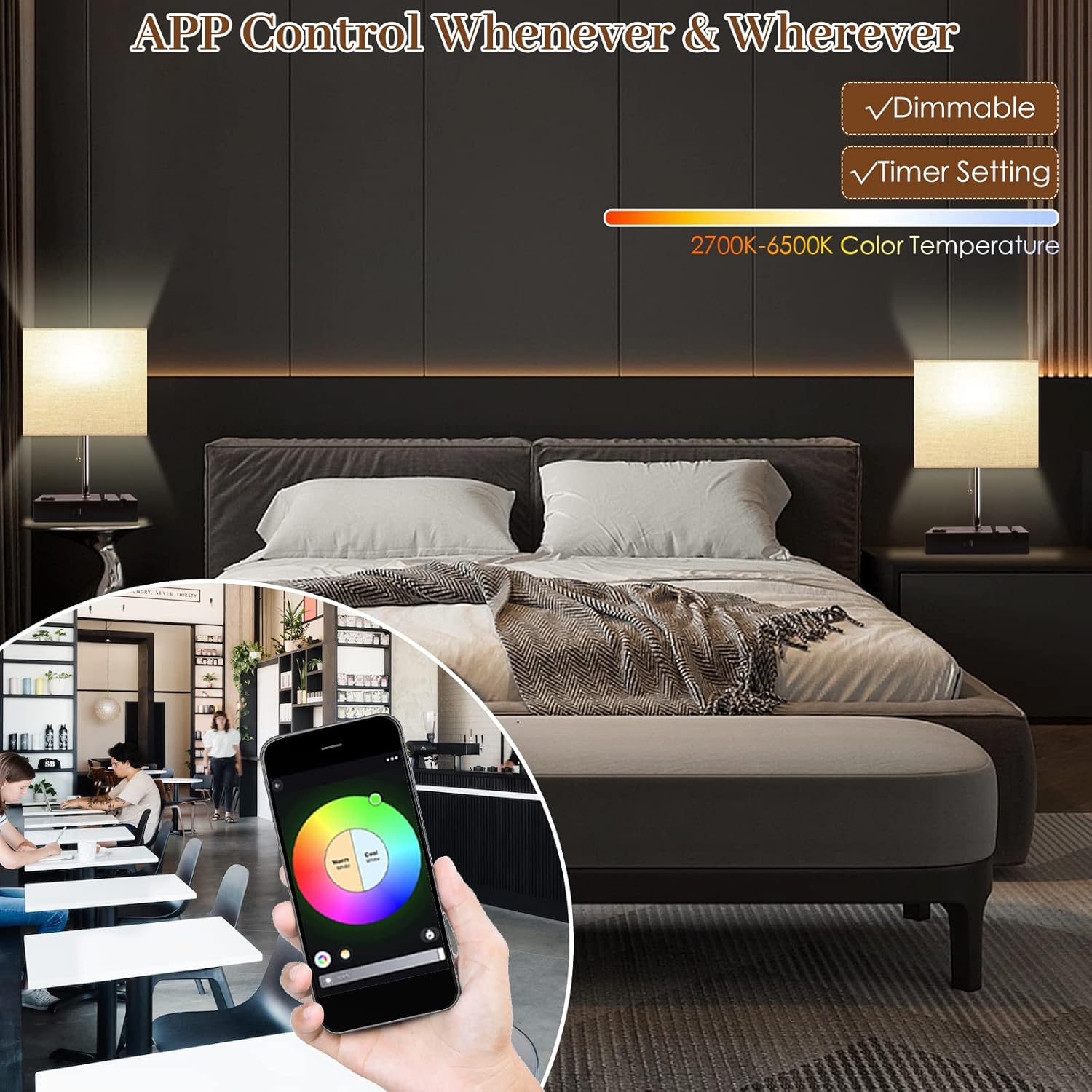 Multiple Functions: This table lamp with a smart RGB bulb has more functions to explore: Timer, Slowly or Delay ON/OFF, Repeat lighting perform act, Music Customs, and more