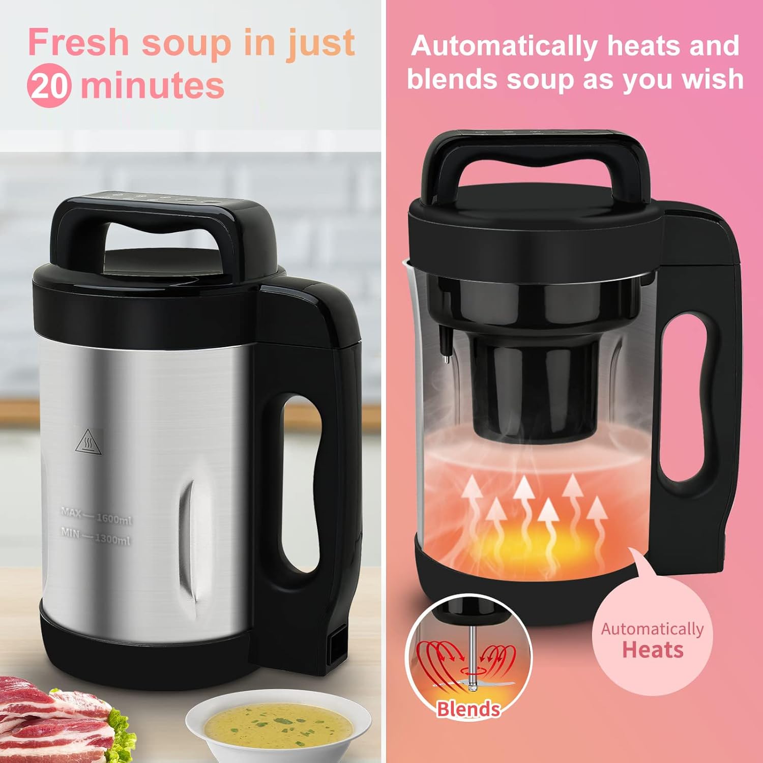 【Simple to Use】 Enjoy smooth and creamy soup with just a single press of a button. Add your ingredients, select the mode, and in 20-30 minutes, your delicious soup is ready to serve
