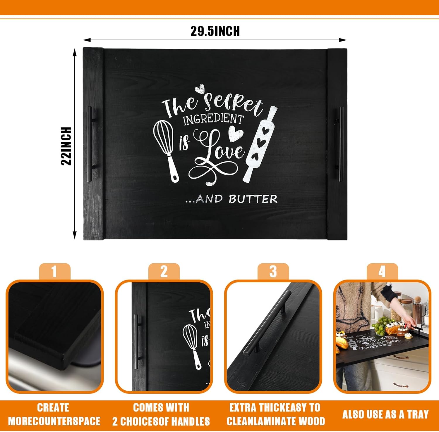 Spiareal Noodle Board Stove Wooden Cover with Handles 29.5 x 22 inches Stove Top Cutting Board Laminate Farmhouse Electric Stove Gas Cover Handmade for Kitchen Counter (Black)