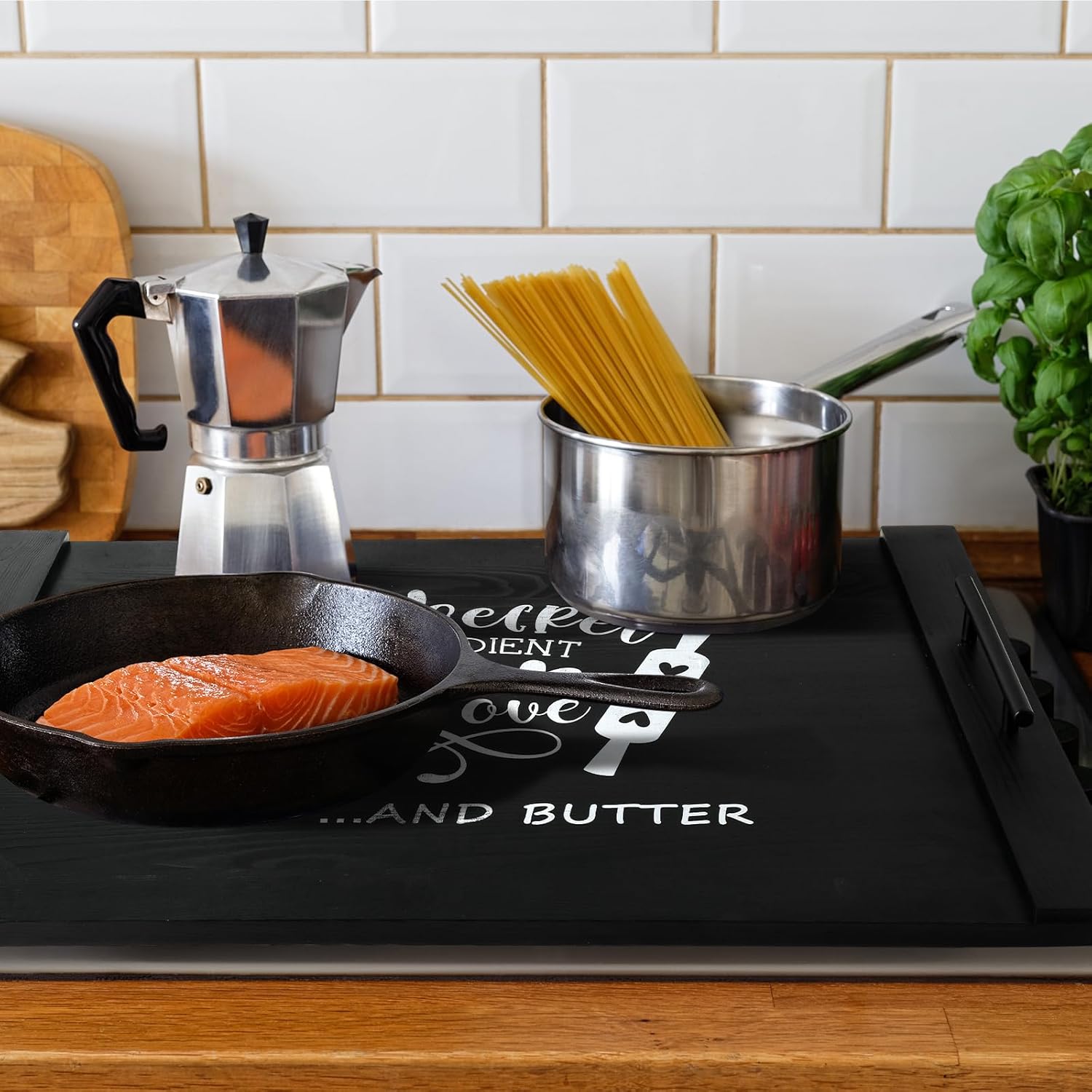 Farmhouse Style: embrace the farmhouse style with this stove cover for electric stove top beautifully printed with the phrase [The Secret Ingredient Is Love and Butter], along with heart patterns, to spread warmth and love to your guests, friends and family, With handles, the cover is easy and portable to move
