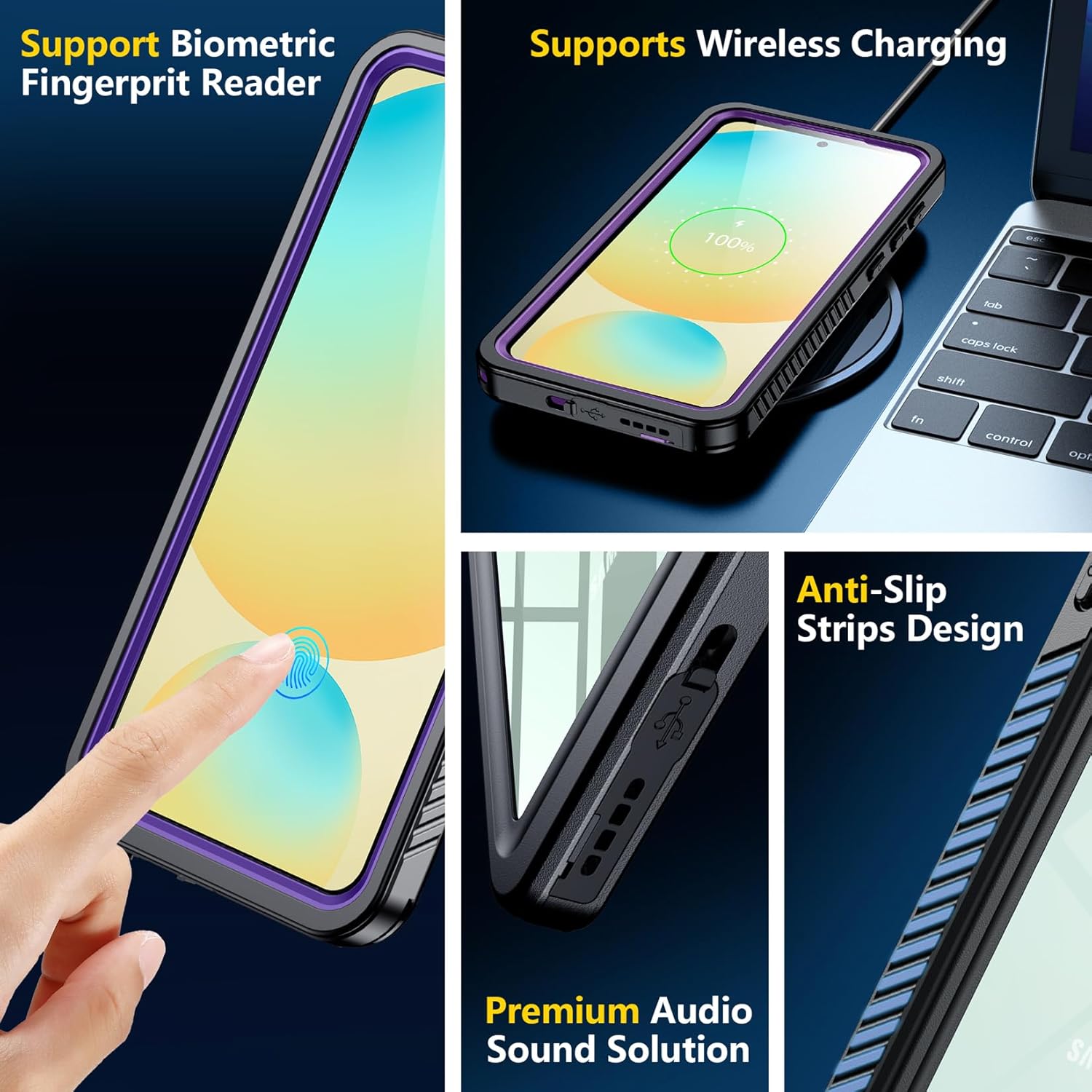 【Practical Design】Our Samsung Galaxy S24 FE Case built-in screen protector remains high sensitivity and supports fingerprint unlock,the clear back fully shows off the original color of the phone. non-slip material provides comfortable grip and not easy to fall off