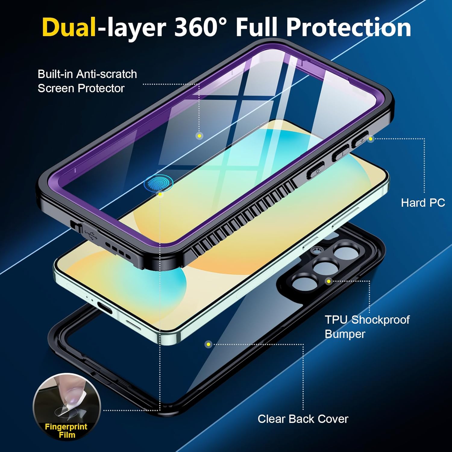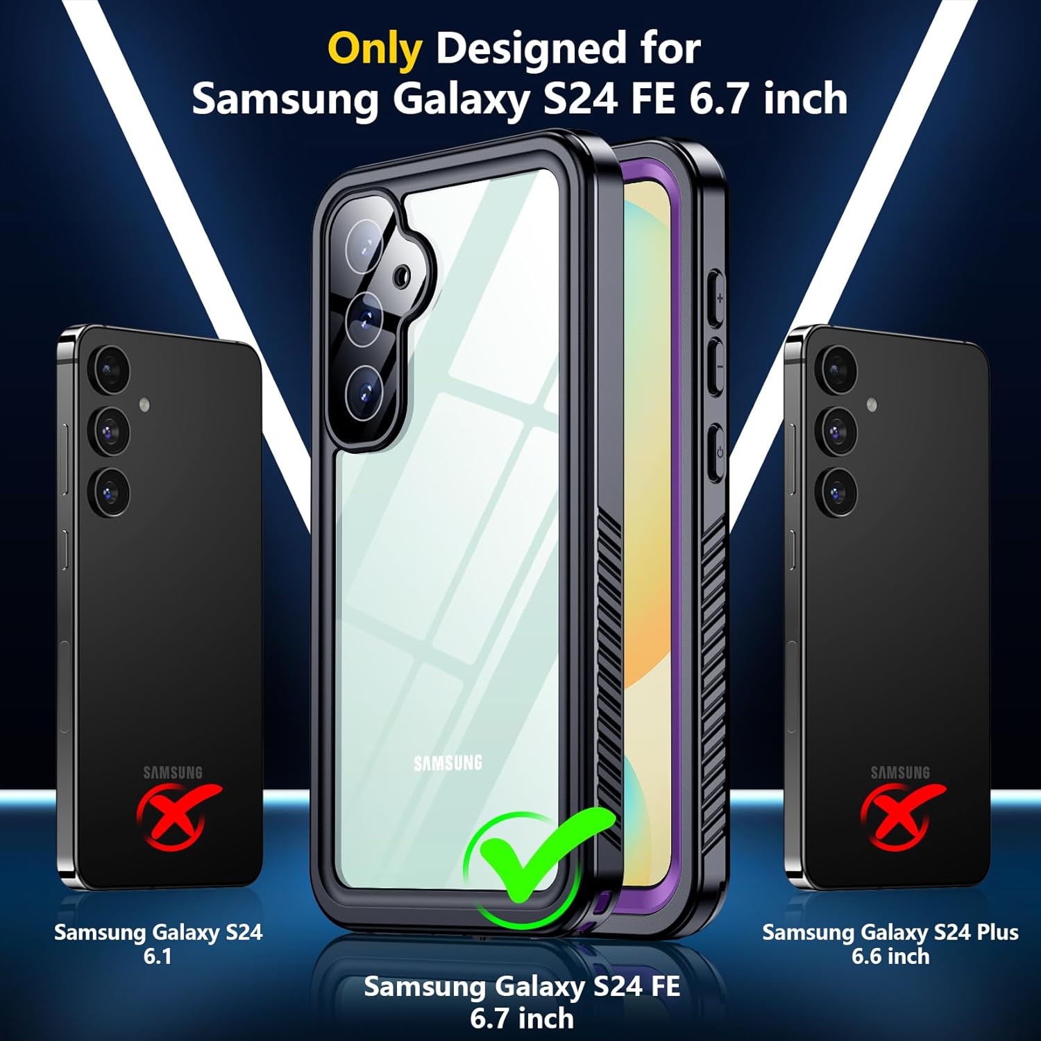SPIDERCASE Designed for Samsung Galaxy S24 FE Case Waterproof,Built-in [ Screen + Camera Lens Protector][IP68 Underwater] Full Protection Heavy Duty Shockproof Anti-Scratched Phone Case,Purple