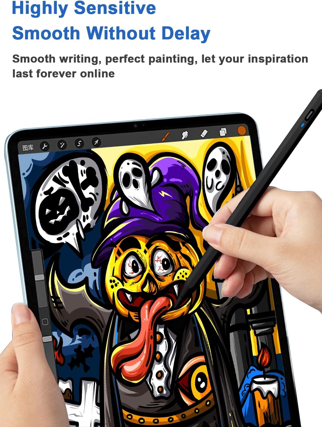 USB-C charging & Smart power off function: This ipad stylus pen is charged by the popular type-c charging port in recent years, so you can better plug it into your computer or adapter for charging. At the same time, when you forget to turn off the phone, the ipad pencil will automatically turn off after 6 minutes of inactivity, effectively preventing the loss of power due to forgetting to turn off the phone, effectively protecting the battery power.