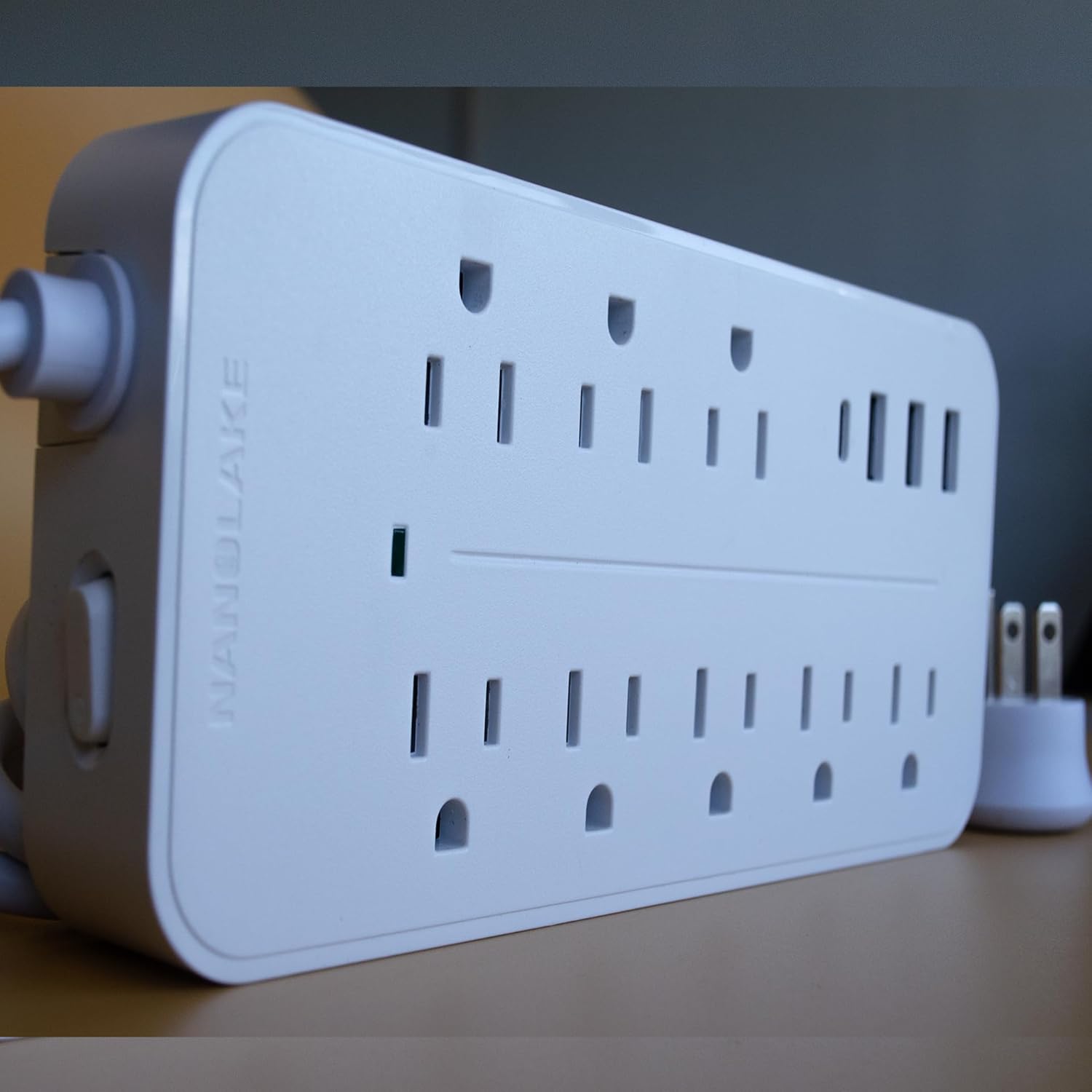Surge Protector Power Strip: This NANOLAKE power strip ensures comprehensive protection for your devices from power surges, spikes, and AC contaminations, shielding your electronics from potential harm.